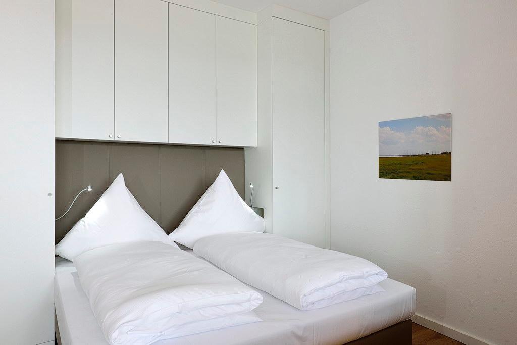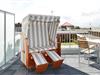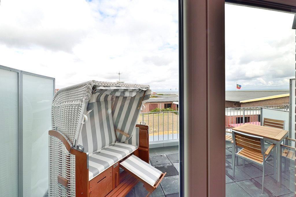 Das Apartment verfügt über ein Doppelbett, ein Etagenbett, einen großen Flatscreen-TV und eine HiFi-Anlage. Ein Kinderbett kann gegen Entgelt im Wohnbereich aufgestellt werden. Nach einem erholsamen Urlaubstag lässt sich auf dem westseitig gelegenen Balkon herrlich entspannen. Neben Gartenmöbeln für 4 Personen steht euch hier auch ein eigener Strandkorb zur Verfügung.