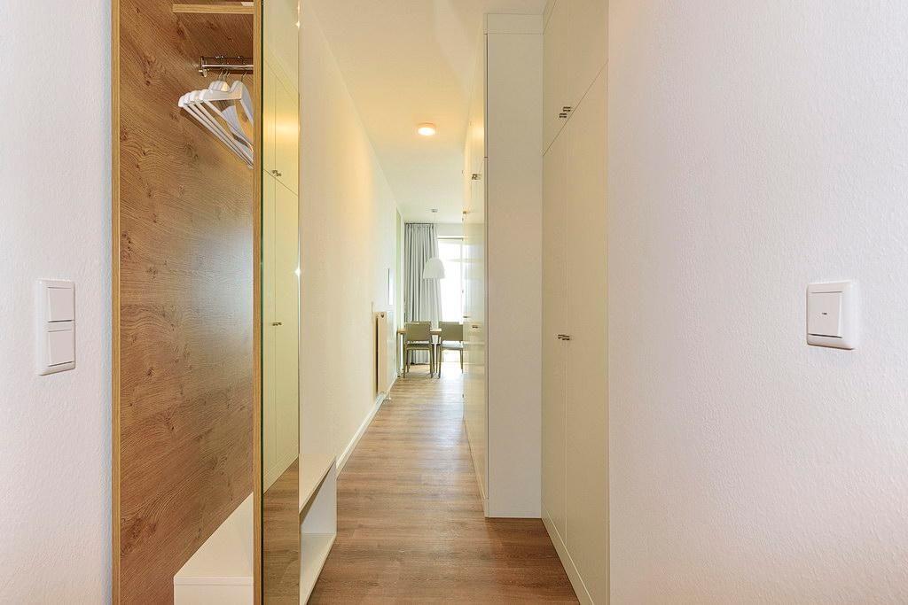 Das Apartment verfügt über ein Wohn-Schlafzimmer mit Doppelbett und Einzelschlafcouch, einen großen Flatscreen-TV und eine HiFi-Anlage. Der Schlafbereich mit dem Doppelbett lässt sich durch ein Schiebeelement vom Wohnbereich separieren.