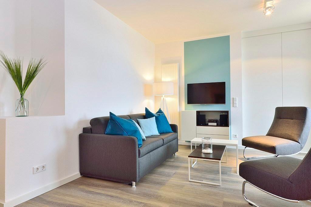 Das großzügige und elegante Apartment befindet sich in Süd-Ost-Lage im ersten Obergeschoss des Aparthotels Anna Düne. Der weitläufige Sandstrand und die Promenade sind nur wenige Meter entfernt. In der unmittelbaren Umgebung findet ihr zahlreiche Einkaufsmöglichkeiten, Restaurants und Cafés. Freizeitangebote wie z. B. das Meerwasser-Freizeitbad, das Tennis-Center oder die Surfschule sind fußläufig bequem zu erreichen.