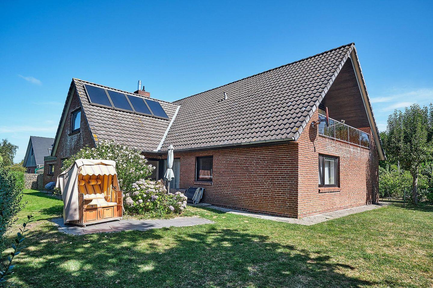 Dieses 180 m² große Ferienhaus "Nordströnj" liegt auf der Halbinsel Nordstrand in der Nähe der Nordsee.
