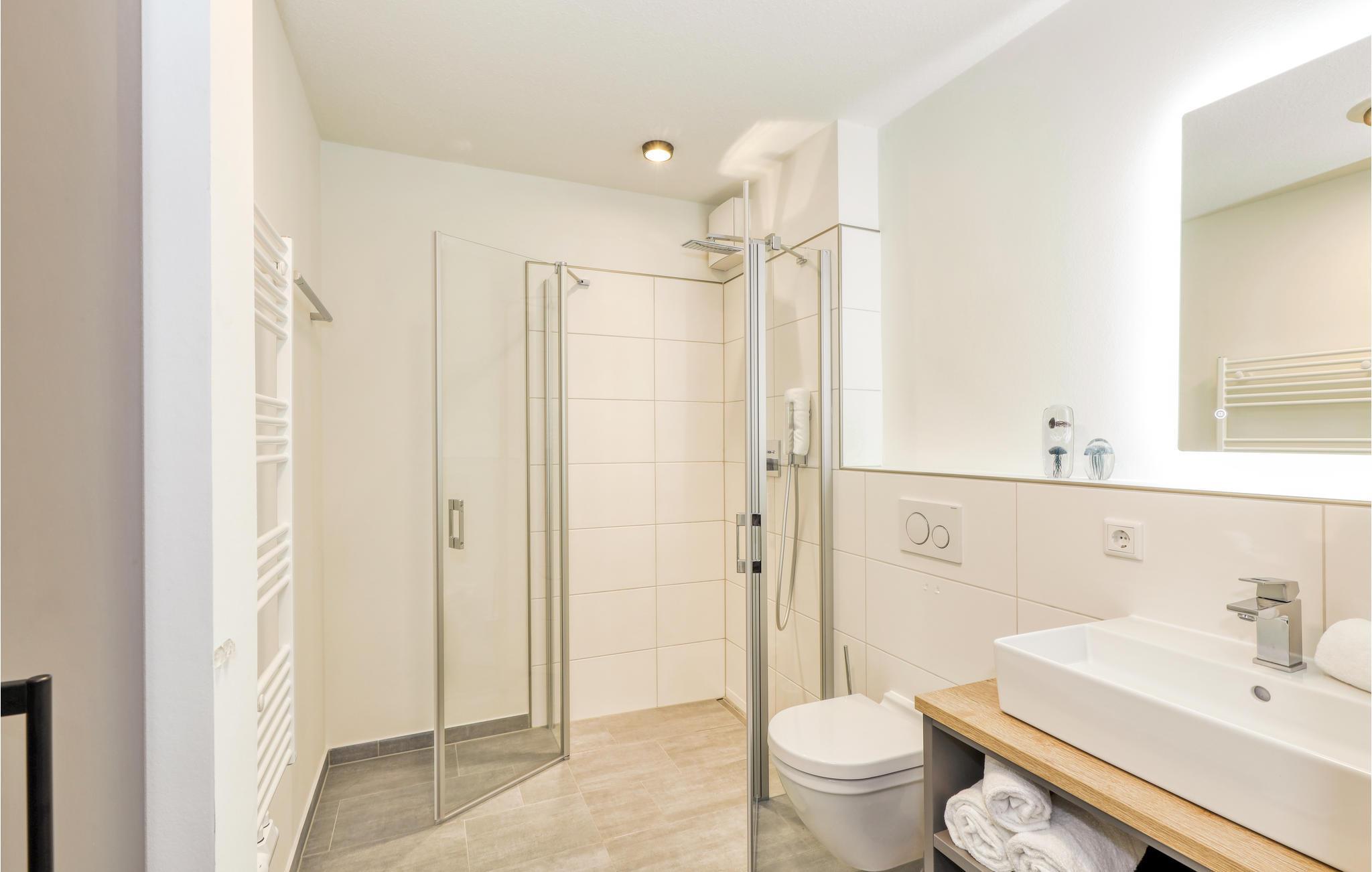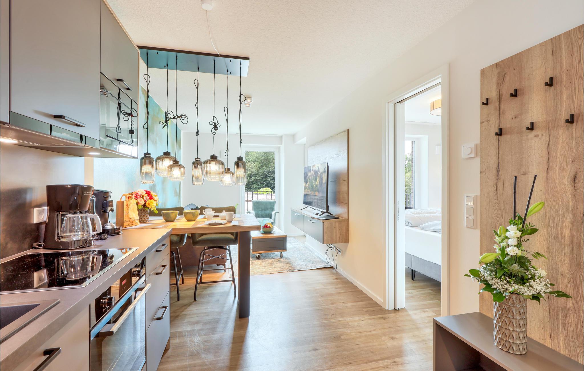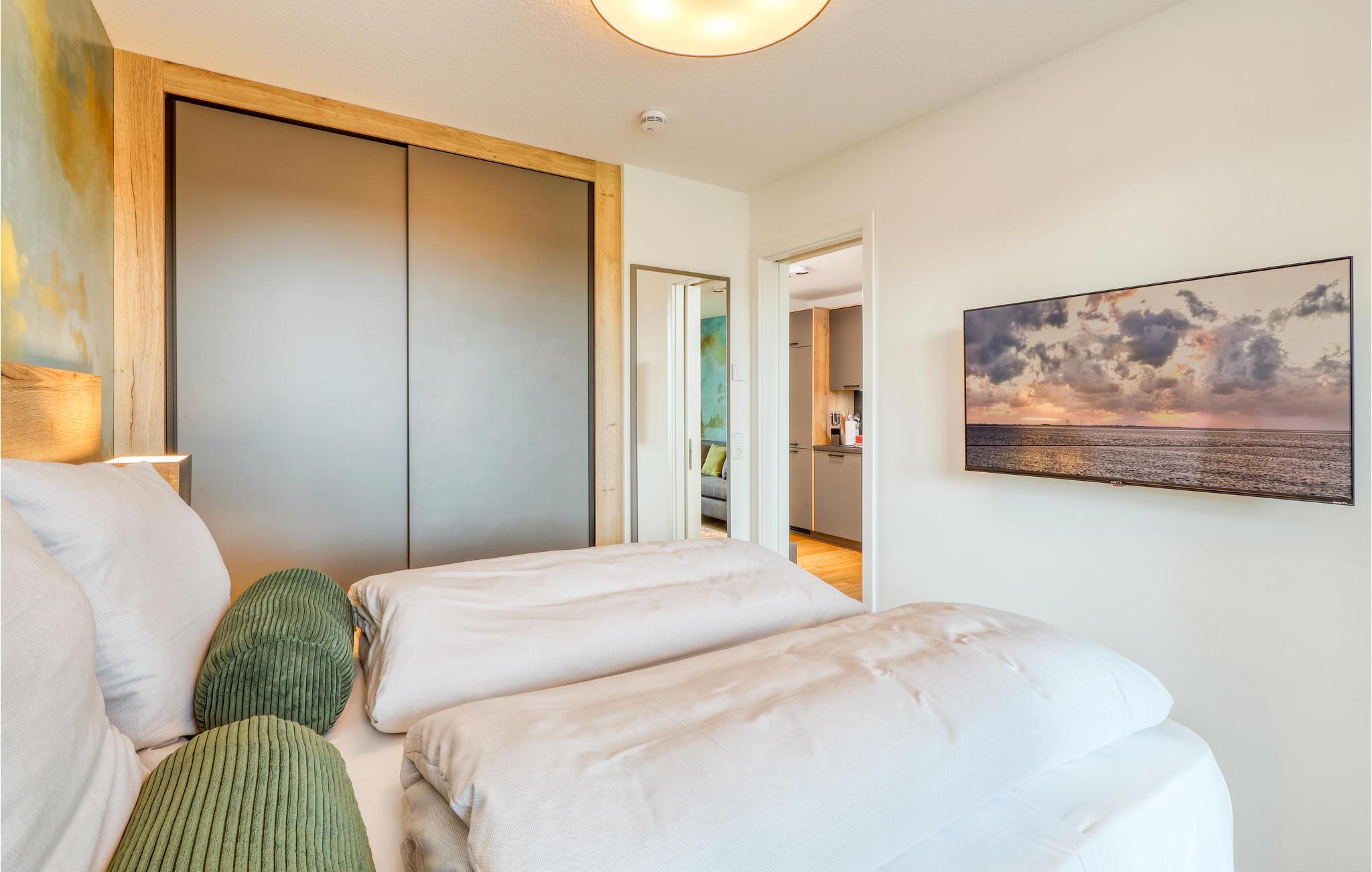 Velkommen til Nordstrand, en smuk halvø ved den slesvig-holstenske nordsøkyst i Vadehavet, som står på UNESCO's verdensarvsliste. Det moderne hus med flere lejligheder er en sand perle midt i naturen. Beliggenheden lige bagved diget er noget helt særligt. Den eksklusive lejligheds moderne maritime udtryk får jer i feriestemning med det samme. Gennem de store vinduespartier strømmer der meget dagslys, og de byder på et vidunderligt blik på det omkringliggende landskab. Med fokus på bæredygtighed er feriehuset ideel til feriegæster, der ønsker sig afslapning i naturen.