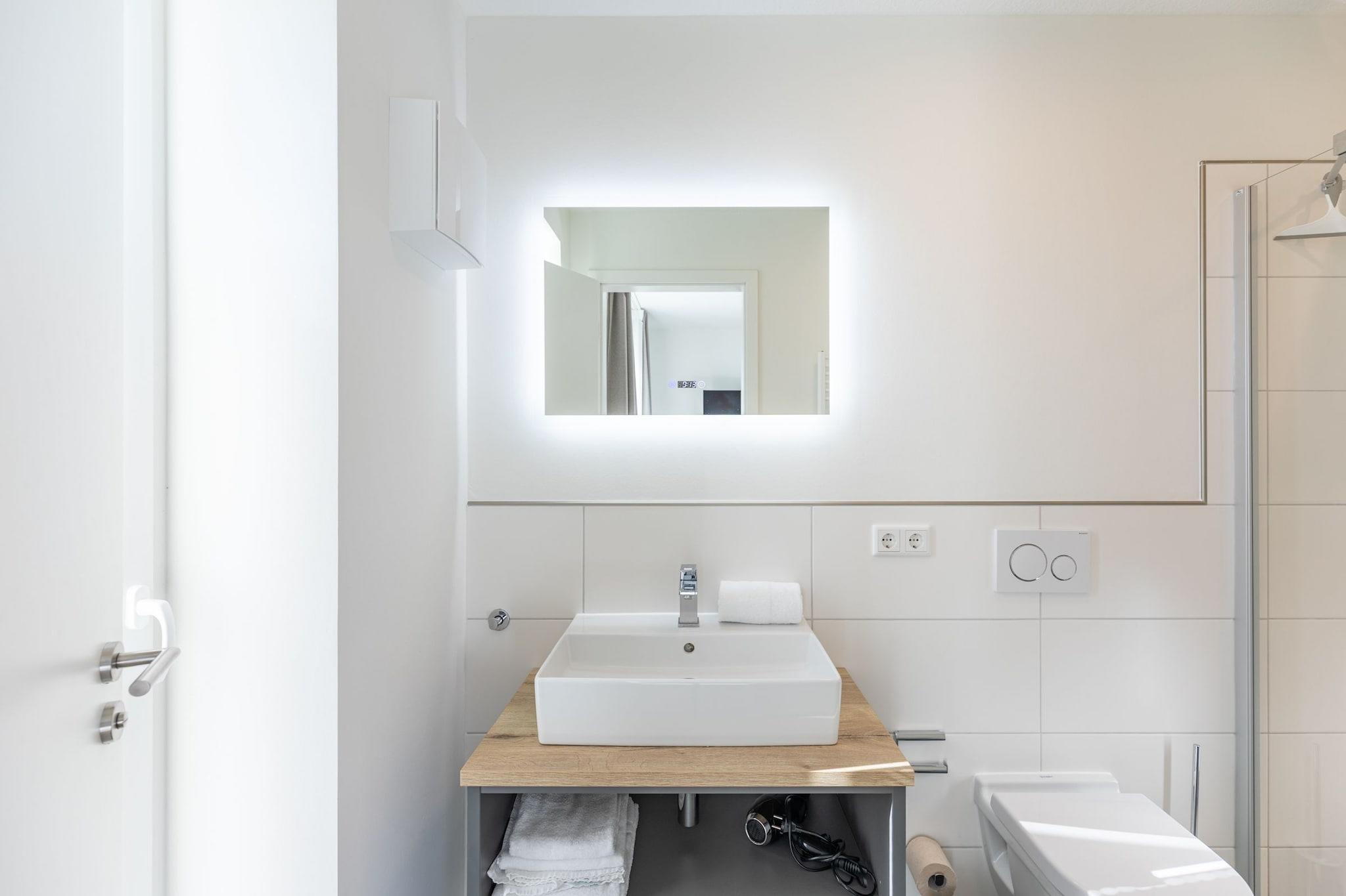 Velkommen til dit personlige ferieparadis! Denne stilfuldt indrettede ferielejlighed på 3. sal i et moderne lejlighedskompleks tilbyder alt, hvad du behøver for et afslappende ophold ved havet. Nyd den fantastiske panoramaudsigt over havet direkte fra altanen – perfekt til afslappede morgentimer eller romantiske solnedgange. Lejligheden har to komfortable soveværelser, en rummelig stue og spisestue samt et fuldt udstyret køkken med apparater i høj kvalitet. Et særligt højdepunkt er den private dampsauna, der giver dig mulighed for wellness og afslapning direkte i din bolig. Det moderne udstyr, de eksklusive materialer og de kærlige detaljer skaber en atmosfære, hvor du kan føle dig godt tilpas. Uanset om det er som et tilflugtssted for par, som stilfuld bolig for familier eller som eksklusiv base for din strandferie – denne ferielejlighed opfylder alle ønsker. Højdepunkter inkluderet: alle forbrugsbaserede energiomkostninger, WLAN, slutrengøring, vaskeripakke (obligatorisk bookbar) ), parkeringsplads, turistskat