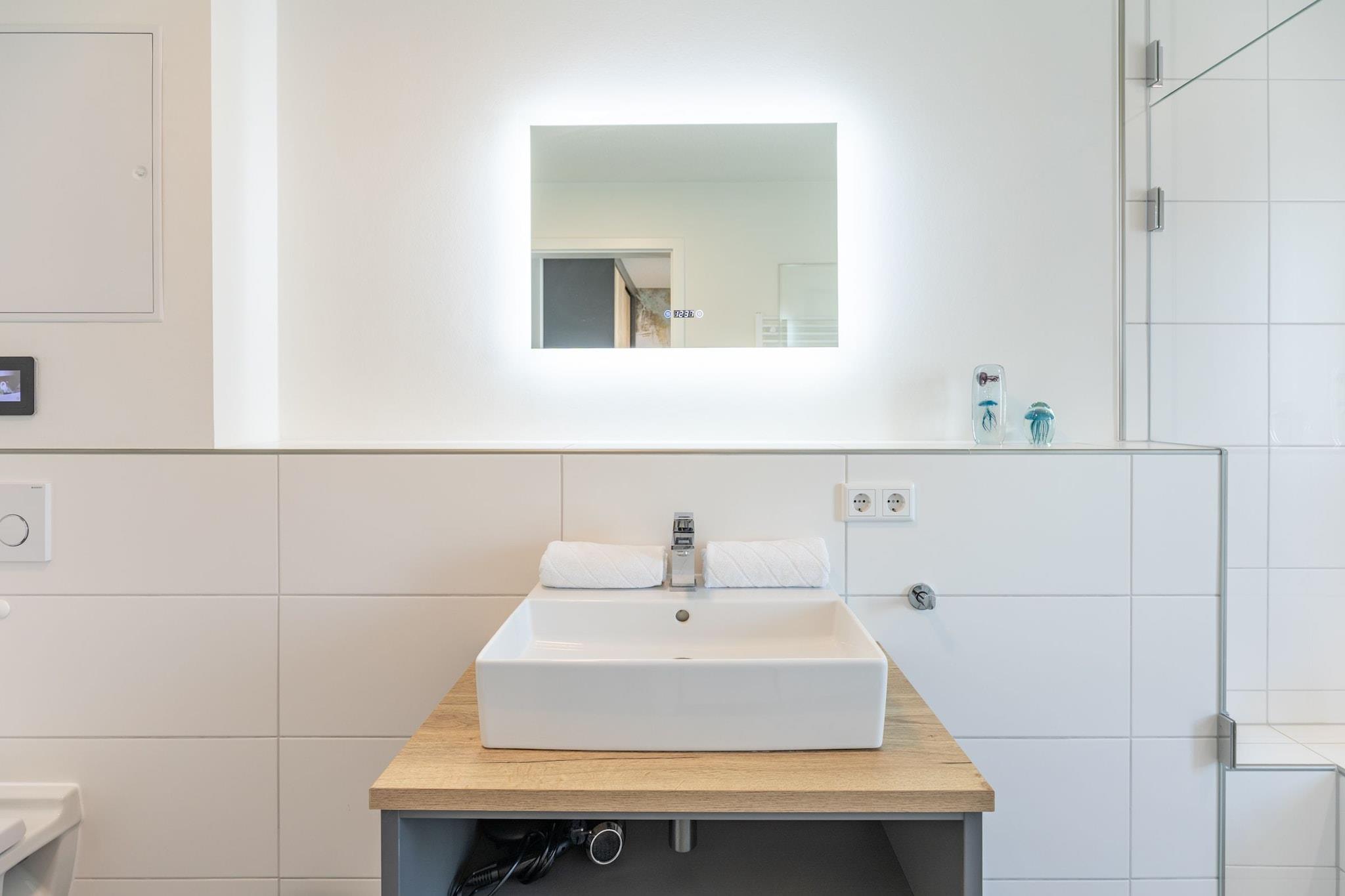Velkommen til dit personlige ferieparadis! Denne stilfuldt indrettede ferielejlighed på 3. sal i et moderne lejlighedskompleks tilbyder alt, hvad du behøver for et afslappende ophold ved havet. Nyd den fantastiske panoramaudsigt over havet direkte fra altanen – perfekt til afslappede morgentimer eller romantiske solnedgange. Lejligheden har to komfortable soveværelser, en rummelig stue og spisestue samt et fuldt udstyret køkken med apparater i høj kvalitet. Et særligt højdepunkt er den private dampsauna, der giver dig mulighed for wellness og afslapning direkte i din bolig. Det moderne udstyr, de eksklusive materialer og de kærlige detaljer skaber en atmosfære, hvor du kan føle dig godt tilpas. Uanset om det er som et tilflugtssted for par, som stilfuld bolig for familier eller som eksklusiv base for din strandferie – denne ferielejlighed opfylder alle ønsker. Højdepunkter inkluderet: alle forbrugsbaserede energiomkostninger, WLAN, slutrengøring, vaskeripakke (obligatorisk bookbar) ), parkeringsplads, turistskat