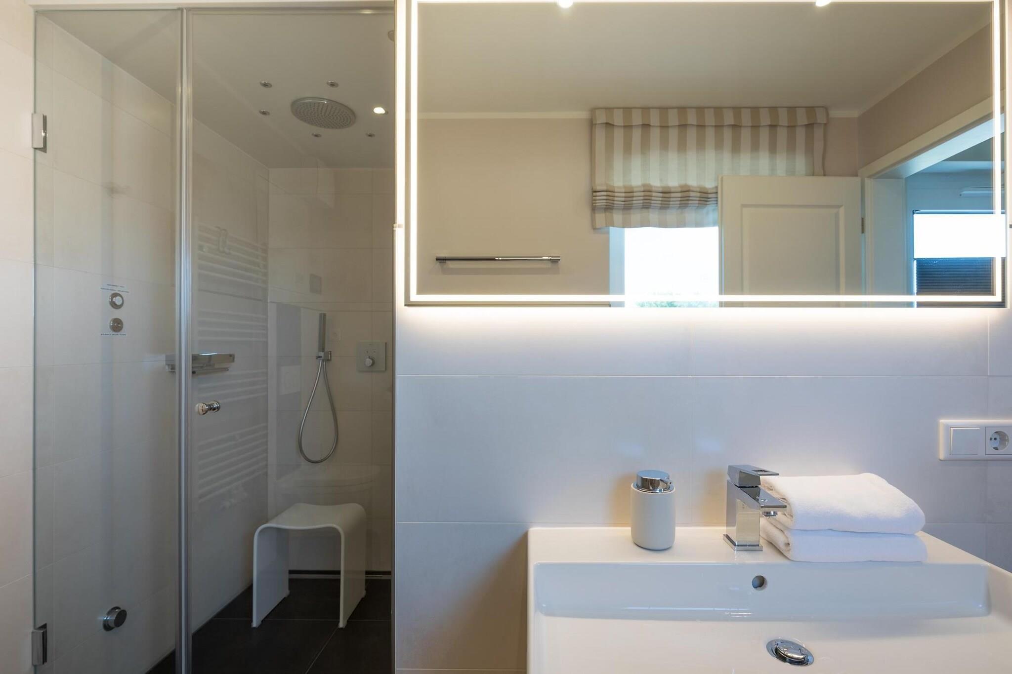 Nyd komforten i en ny bygning (2 soveværelser, 2 bruserum) med denne særlige udsigt over diget til Vesterhavet - lad dig fortrylle af freden og naturen i penthouselejligheden! Lejligheden er beliggende på Norderhafen - lige ved diget og en Noor, over hvilken du har en fantastisk panoramaudsigt over øen og Vesterhavet med Halligen fra terrassen. Vesterhavet med boardingtrapper er kun en leg væk og "er i luften". Det venlige Nordstrand byder på fred og natur, når det er bedst og er også et ideelt udgangspunkt for dagsture: "til fods" til Sild, Pellworm, Föhr, Amrum eller Helgoland (hver sæsonbestemt færgeforbindelse fra Nordstrand); Watt-vandringer, badestrand, cykelture i området eller til enhver tid via vejforbindelsen med bil eller offentlig bus til fastlandet ... Højdepunkter inkluderet: alle forbrugsbaserede energiomkostninger, WLAN, slutrengøring, vaskeripakke (obligatorisk bookbar) ), parkeringsplads, turistskat Bemærk: Soveværelserne har hver sit eget bad.