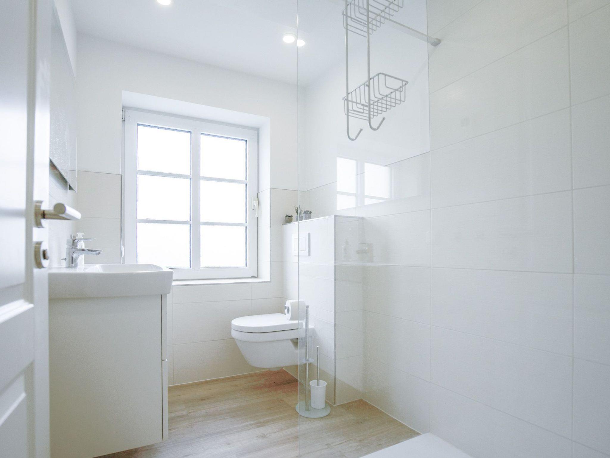 Das Bad bietet eine einladende ebenerdige Regendusche. In einem kleinen Hauswirtschaftsraum steht Ihnen eine Waschmaschine zur Verfügung. Die Wohnung wird über eine Fußbodenheizung und indirekte Infrarotelemente erwärmt.