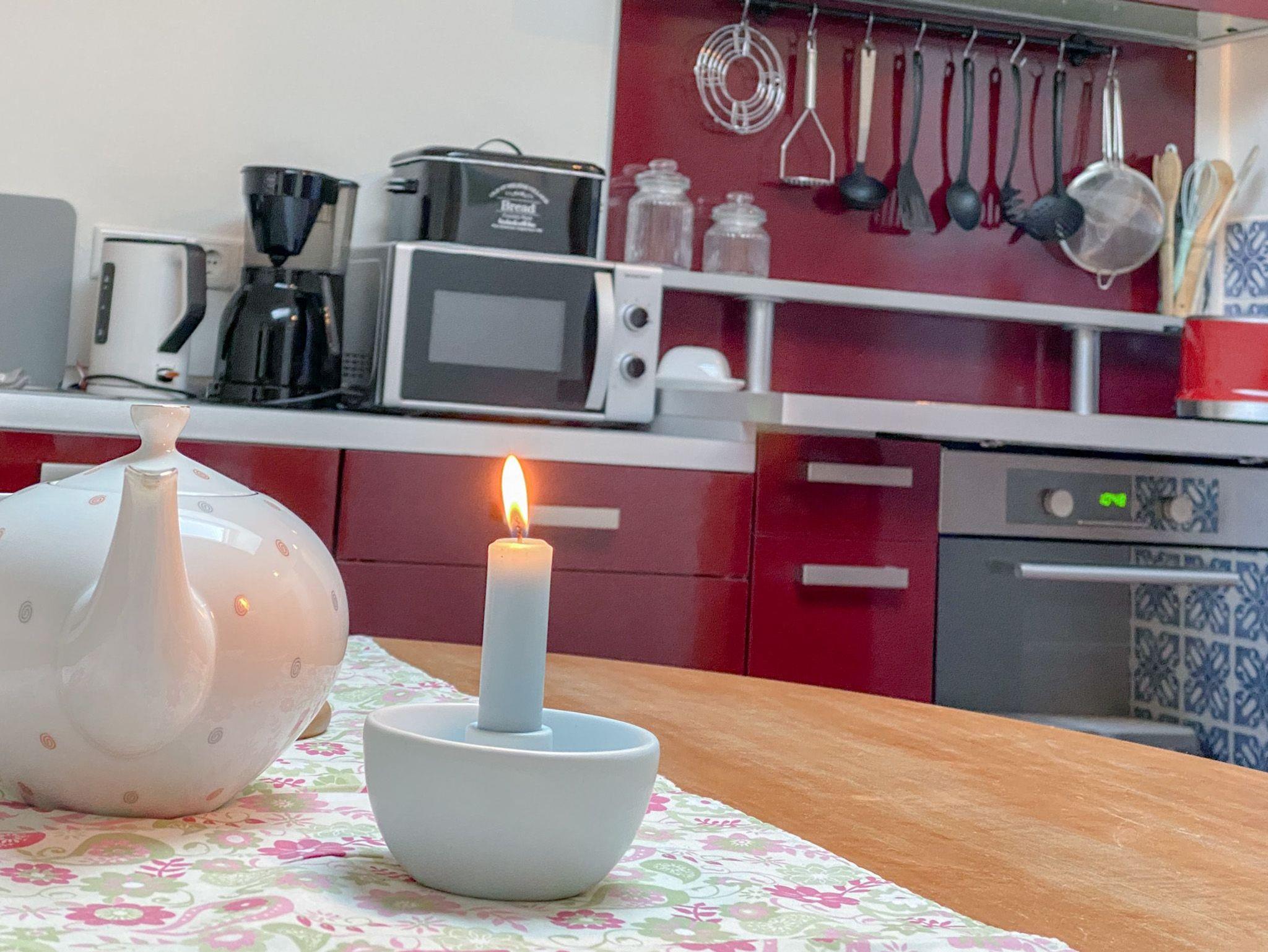 Die Küche hat Besteck, Geschirr, eine Spülmaschine und alles was ihr zum Zaubern eures