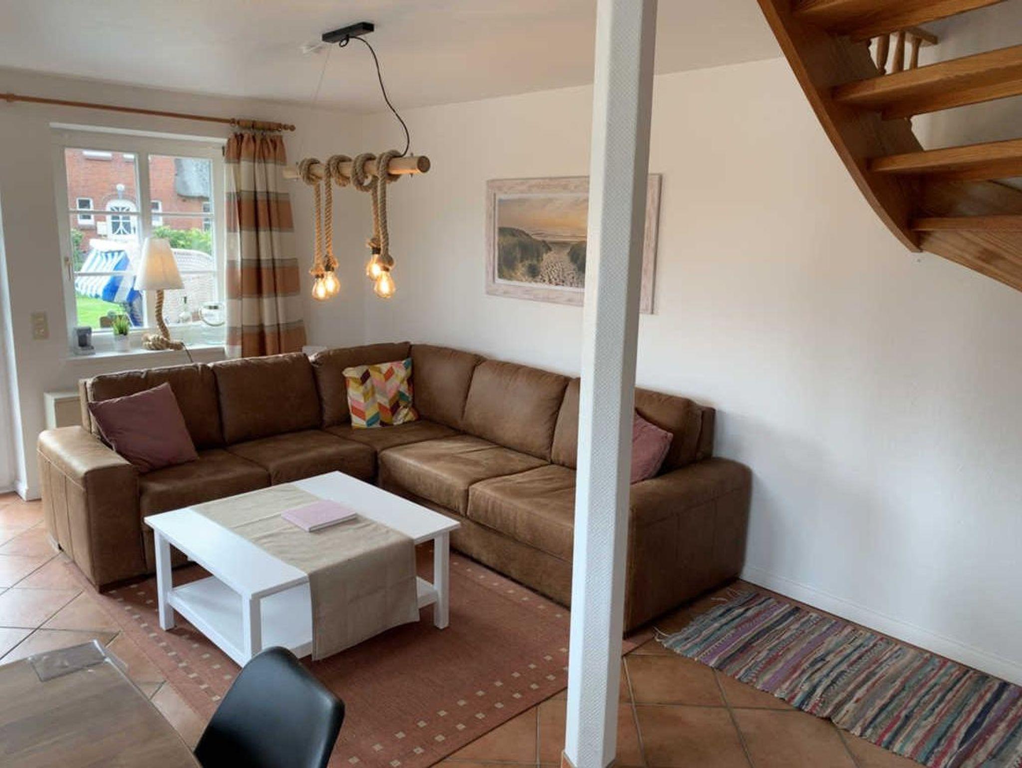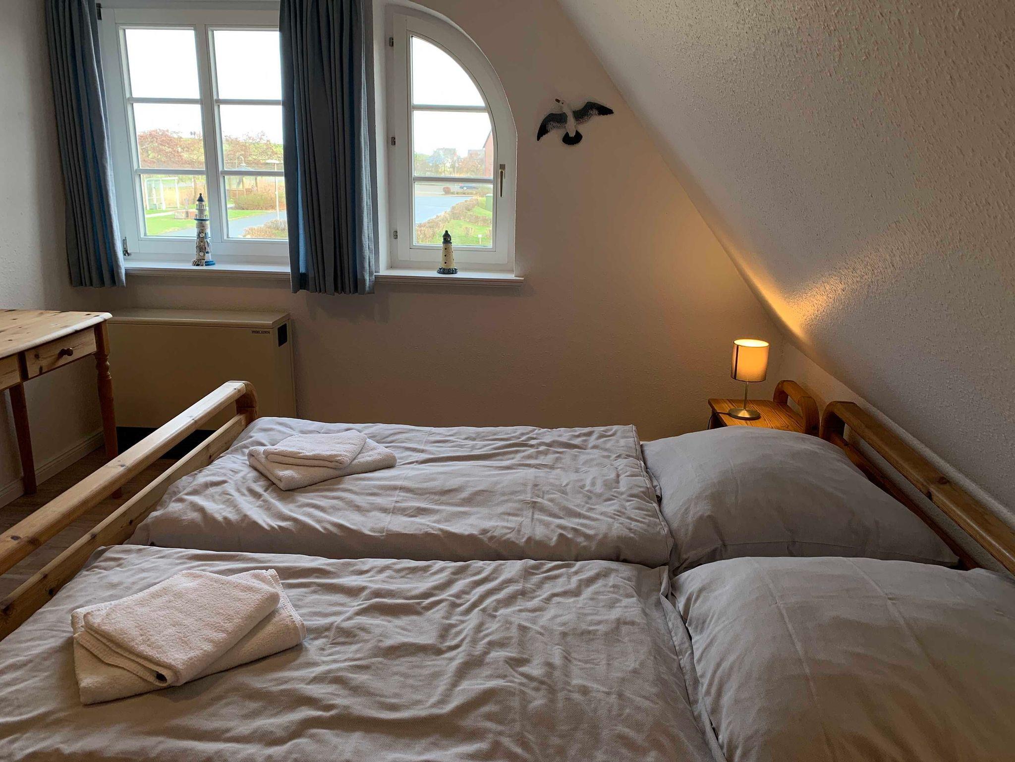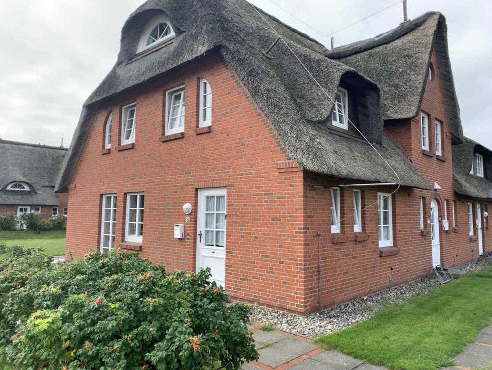 Der Friesenhof ist ein im typisch friesischen Stil erbautes Reetdachgebäude mit eigenständigen Hausteilen, gelegen im Kurzentrum Nordstrand. Der Hausteil ist ca. 90qm groß und ist für bis zu 6 Personen geeignet. Im Erdgeschoss befinden sich das geräumige Wohnzimmer mit Wohn- und Essbereich, die seperate komplett ausgestattet Einbauküche mit Spülmaschine, Mikrowelle usw. Vom Flur aus ist ein zusätzliches Gäste-WC zu erreichen, und vom Wohnzimmer aus geht es auf die möblierte zum Süden liegende Außenterrasse mit eigenem Strandkorb. Zwei Schlafzimmer, eines mit einem Doppelbett und ein weiteres mit zwei Einzelbetten, sowie Dusche/WC befinden sich im 1. Stock, ein drittes Schlafzimmer mit ebenfalls zwei Einzelbetten im oberen als Galerie ausgebauten Giebelzimmer.