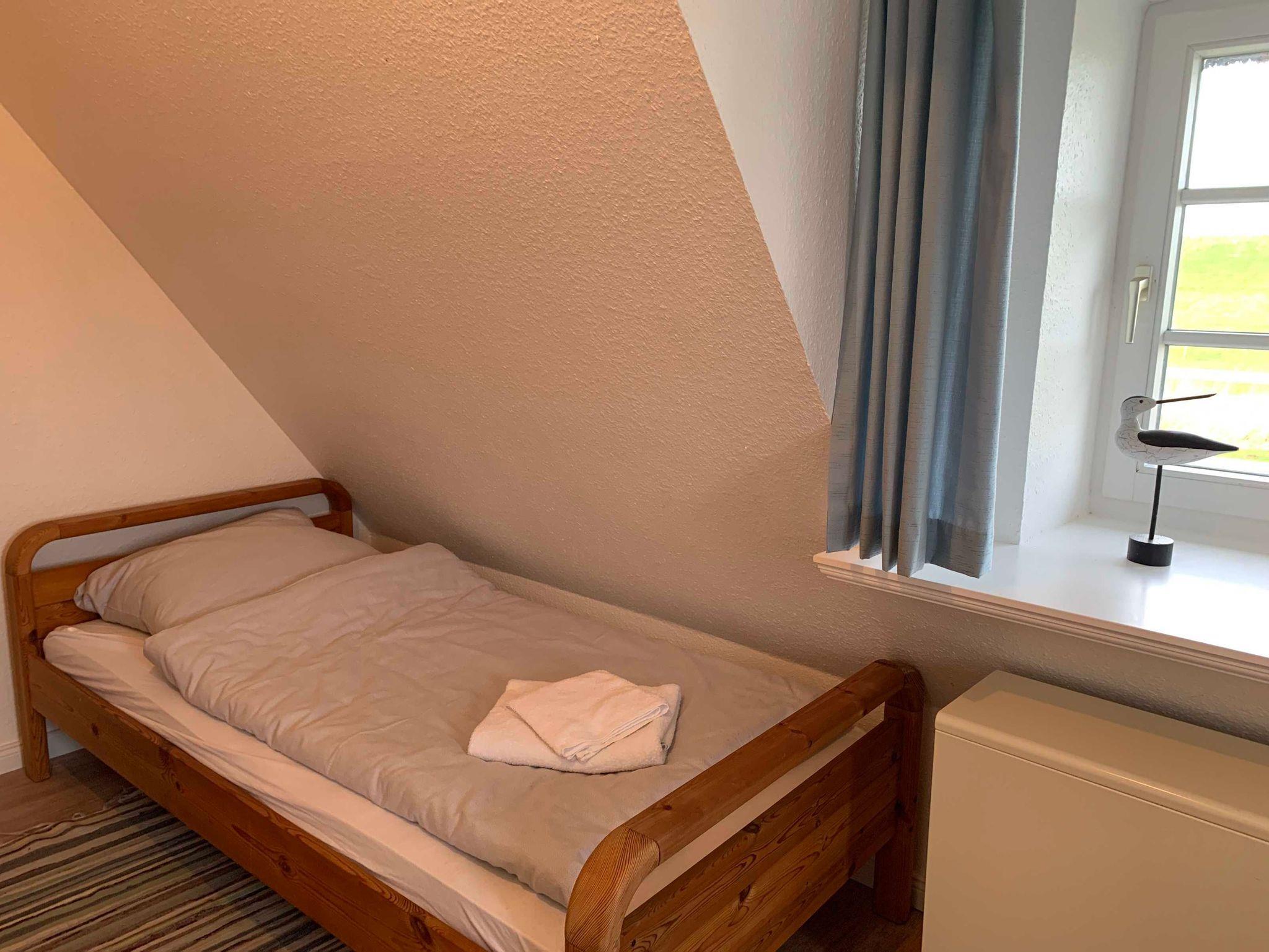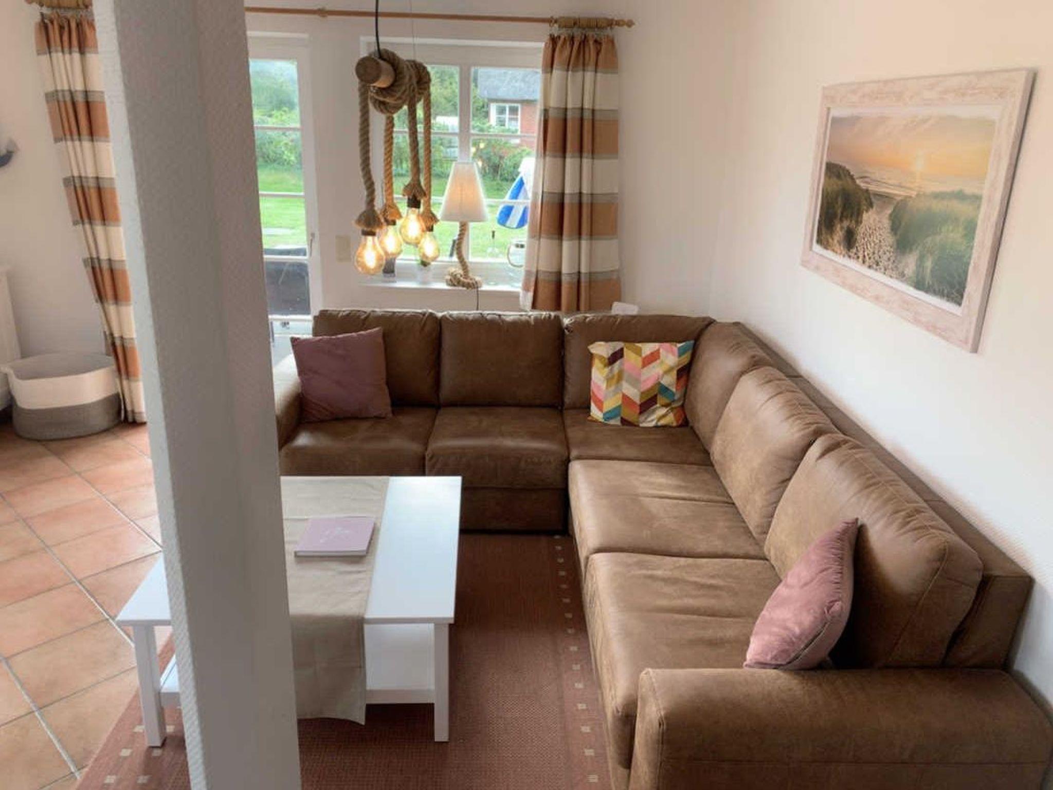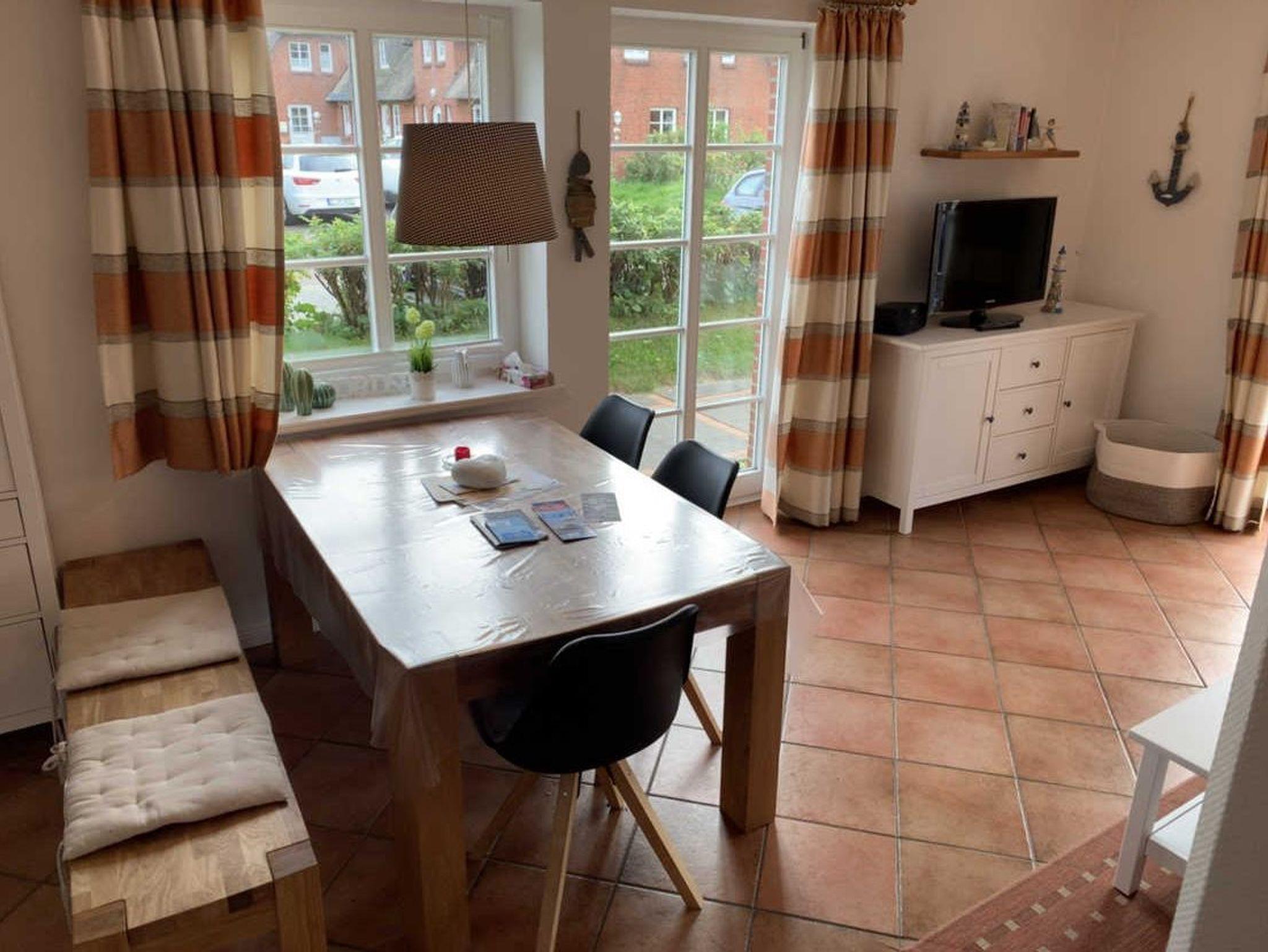 Der Friesenhof ist ein im typisch friesischen Stil erbautes Reetdachgebäude mit eigenständigen Hausteilen, gelegen im Kurzentrum Nordstrand. Der Hausteil ist ca. 90qm groß und ist für bis zu 6 Personen geeignet. Im Erdgeschoss befinden sich das geräumige Wohnzimmer mit Wohn- und Essbereich, die seperate komplett ausgestattet Einbauküche mit Spülmaschine, Mikrowelle usw. Vom Flur aus ist ein zusätzliches Gäste-WC zu erreichen, und vom Wohnzimmer aus geht es auf die möblierte zum Süden liegende Außenterrasse mit eigenem Strandkorb. Zwei Schlafzimmer, eines mit einem Doppelbett und ein weiteres mit zwei Einzelbetten, sowie Dusche/WC befinden sich im 1. Stock, ein drittes Schlafzimmer mit ebenfalls zwei Einzelbetten im oberen als Galerie ausgebauten Giebelzimmer.
