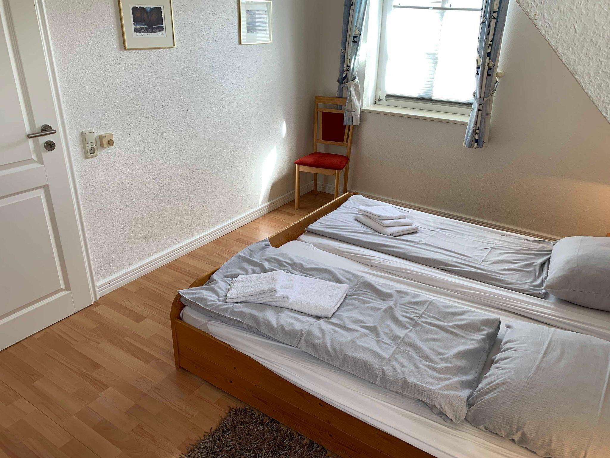 Das Haus am Kurhaus 9 bietet komfortablen Platz für 2 bis 4 Personen. Im Obergeschoss befinden sich zwei gemütliche Schlafzimmer ? eines mit einem Doppelbett und ein weiteres mit zwei Einzelbetten. Auf dieser Etage liegt auch das Badezimmer mit Dusche und WC.