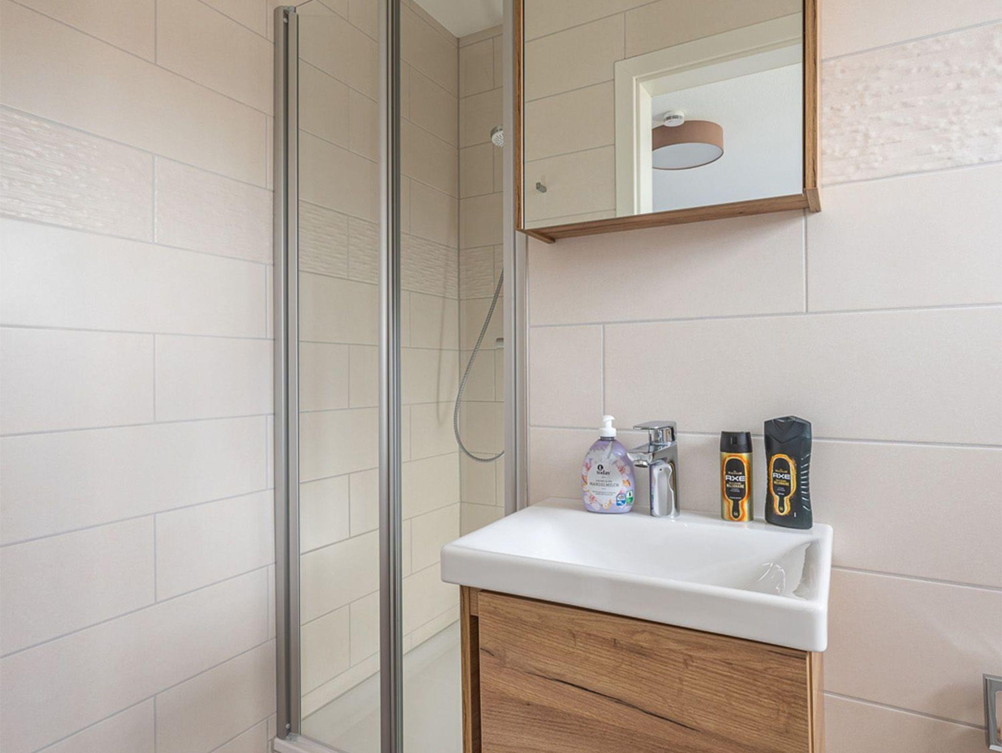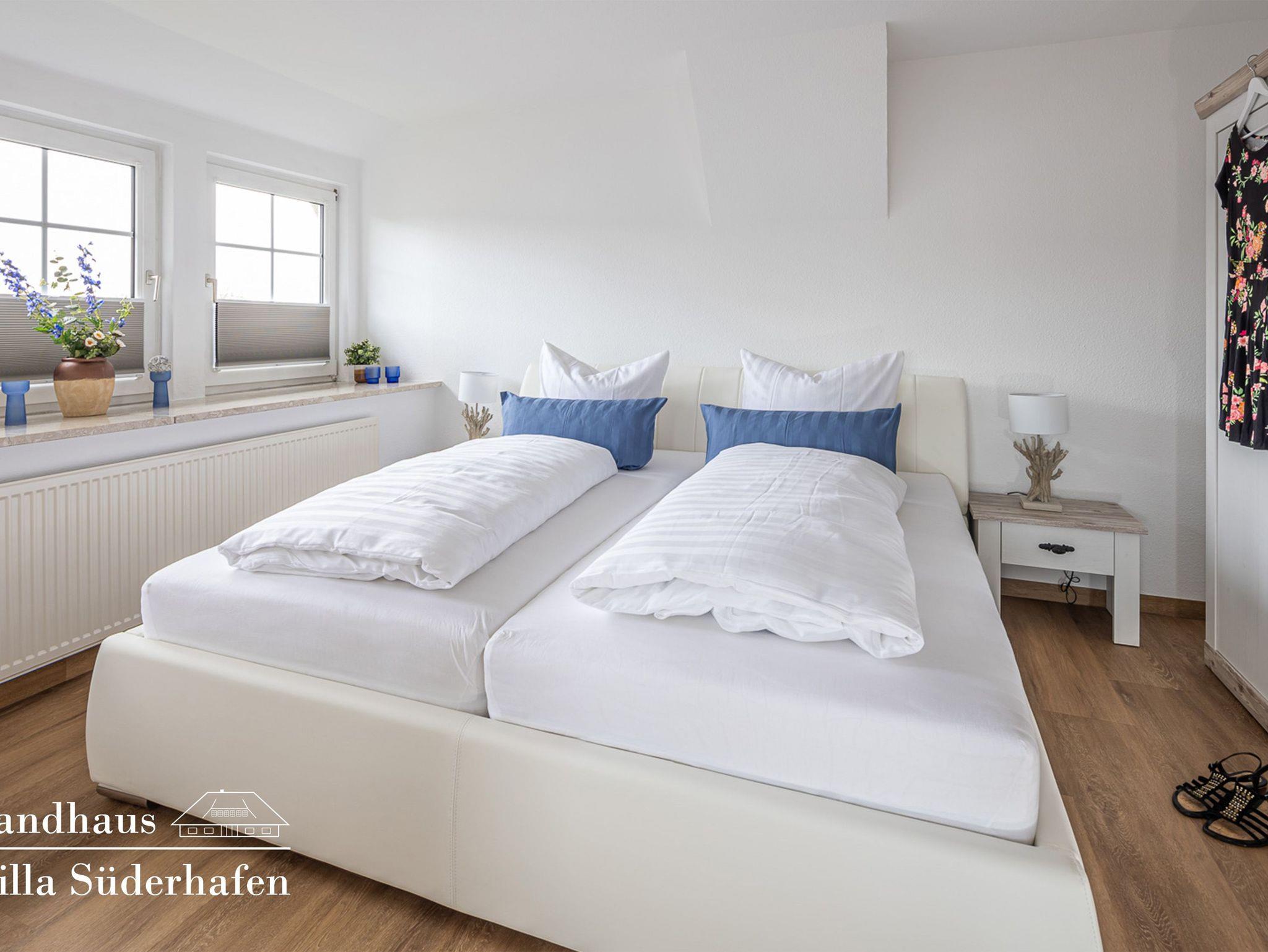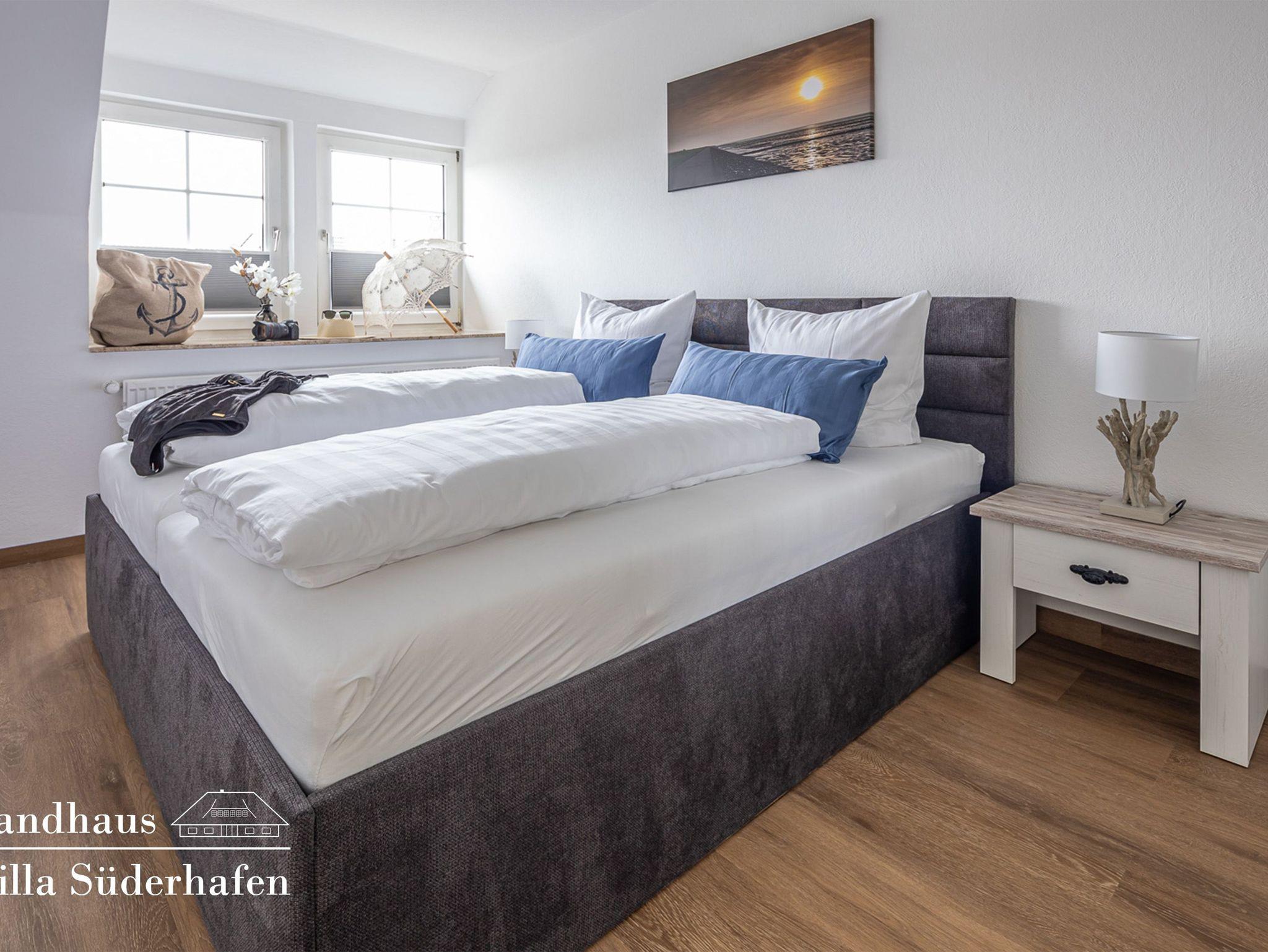 Um den Aufenthalt für bis zu sechs Personen so angenehm wie möglich zu machen, wurden die drei Schlafbereiche mit großen 200x200 cm Doppelbetten ausgestattet. Die jeweils anschließenden Bäder verfügen alle über eine Dusche, einen Waschtisch und ein eigenes WC. Der Wohn- und Essbereich und die Dachterrasse laden zu gemeinsamen Aktivitäten und die direkt daneben befindliche Küche zum gemeinsamen kochen ein.