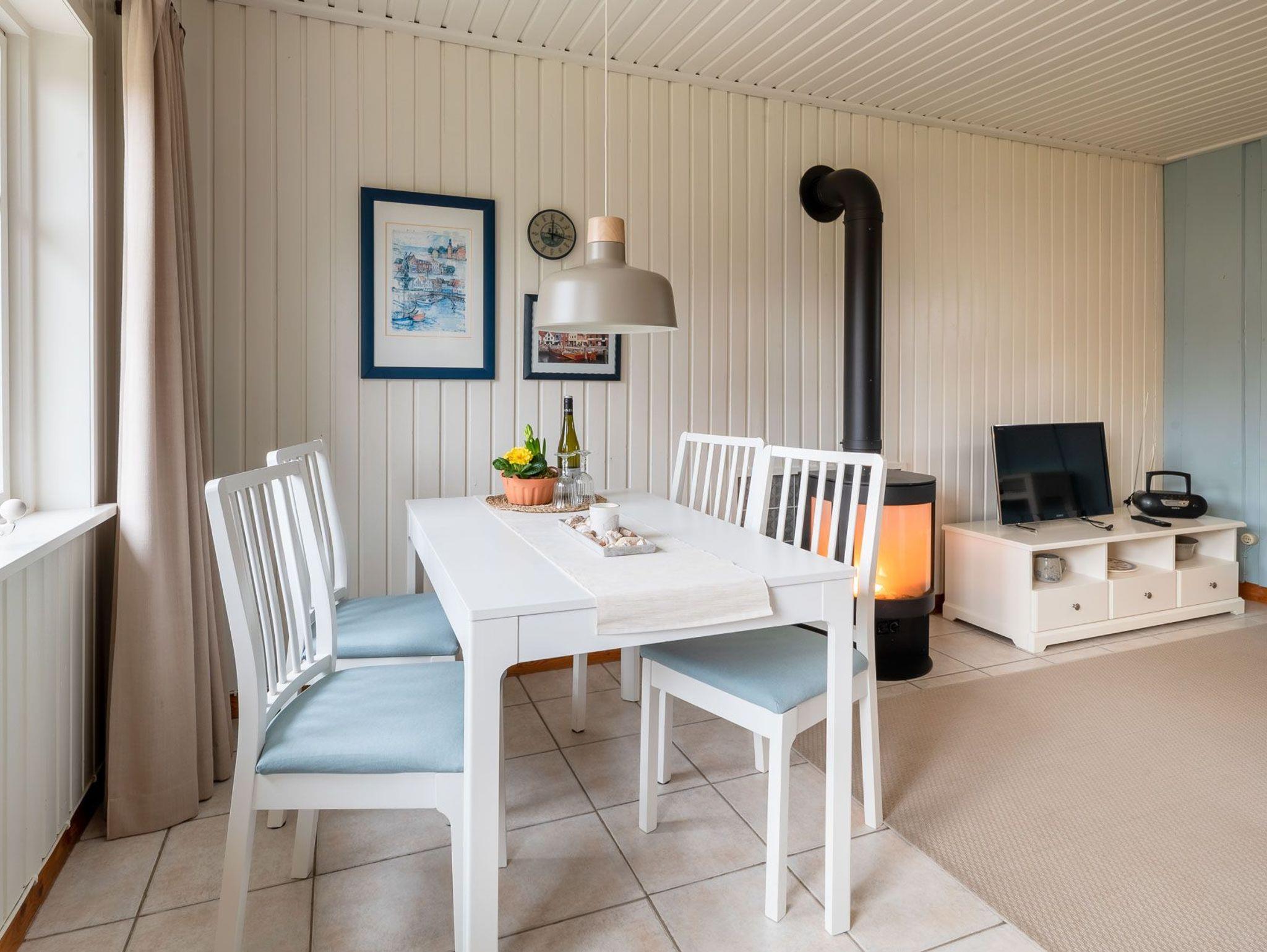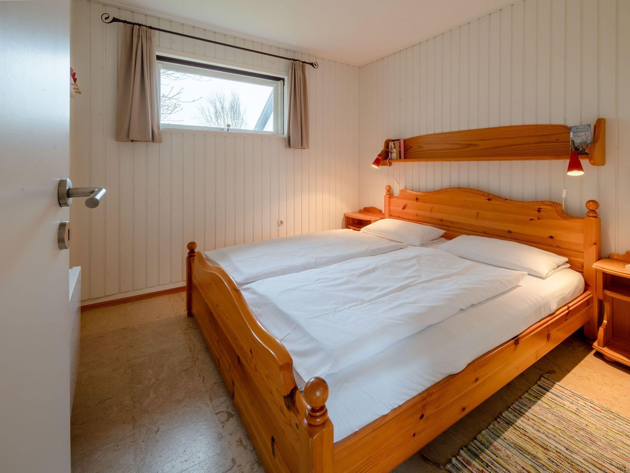 Erleben Sie einen erholsamen Urlaub in Haus Uwe, einem eingeschossigen Ferienhaus für bis zu 4 Personen. Das Haus verfügt über ein Wohnzimmer, zwei Schlafzimmer, eine Küche und ein Duschbad mit skandinavisch-rustikalem Interieur und Vollholzmöbeln, die je nach Jahreszeit ihre Farben wechseln. Ein Gaskaminofen im Wohnzimmer sorgt für wohlige Wärme. Die Einbauküche ist mit Herd/Ceranfeld, Backofen, Spülmaschine, Kaffeemaschine, Wasserkocher und Toaster ausgestattet.