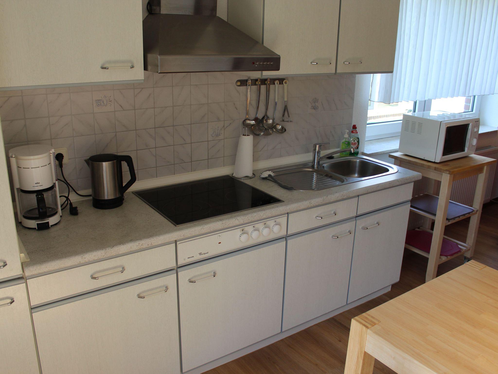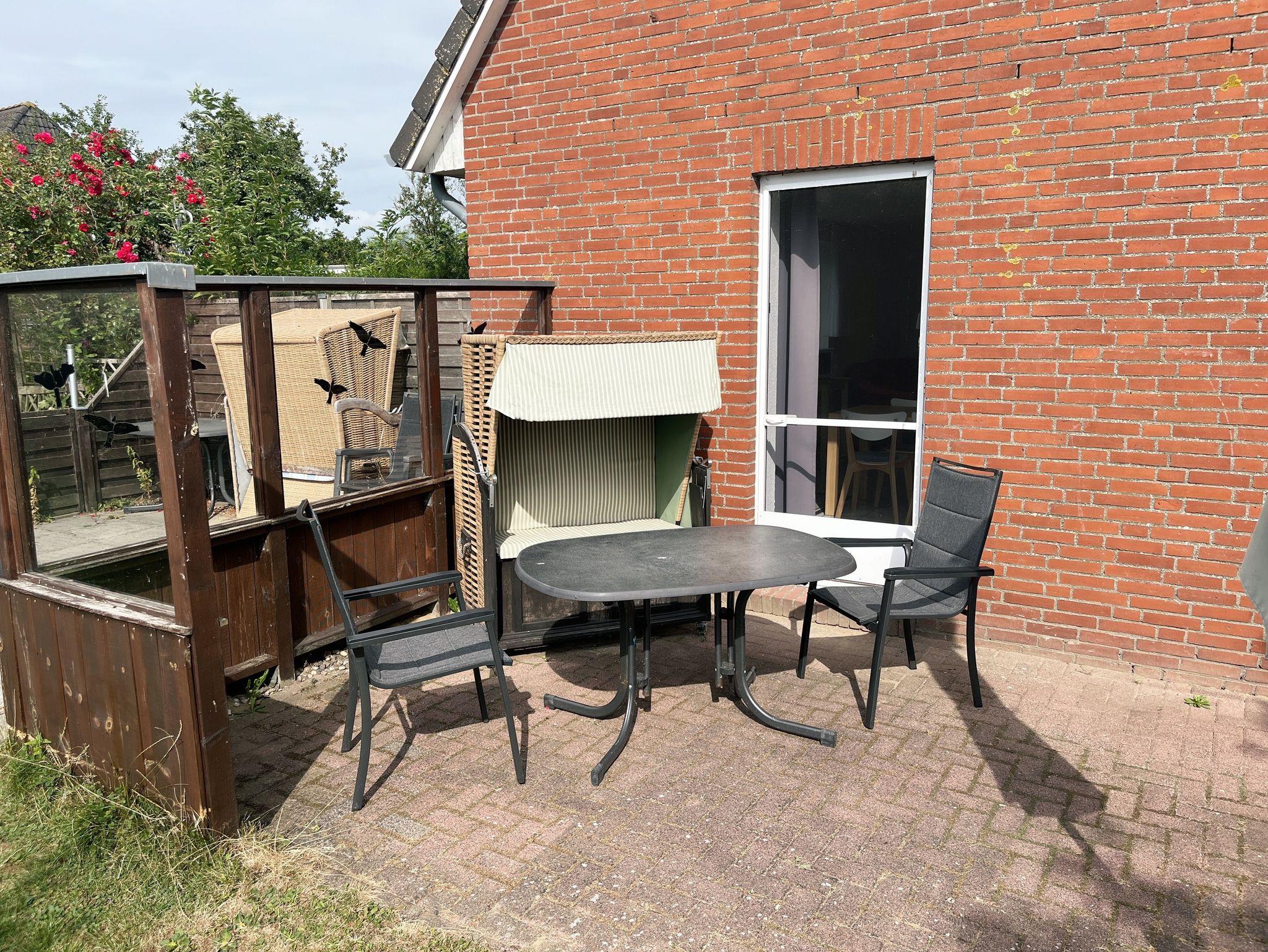 Diese Wohnung ist ca. 45 qm groß und liegt im Erdgeschoss mit anschließender Terrasse. Sie ist ausgestattet für 2 mit einem Schlafzimmer mit Doppelbett (1,8 x 2 m) einem Wohn- und Esszimmer mit Pantryküche, sowie einem Duschbad. Die Terrasse ist vollmöbliert inkl. Strandkorb und direkt von der Wohnung aus zu betreten. Parkplätze gibt es ausreichend direkt am Haus.