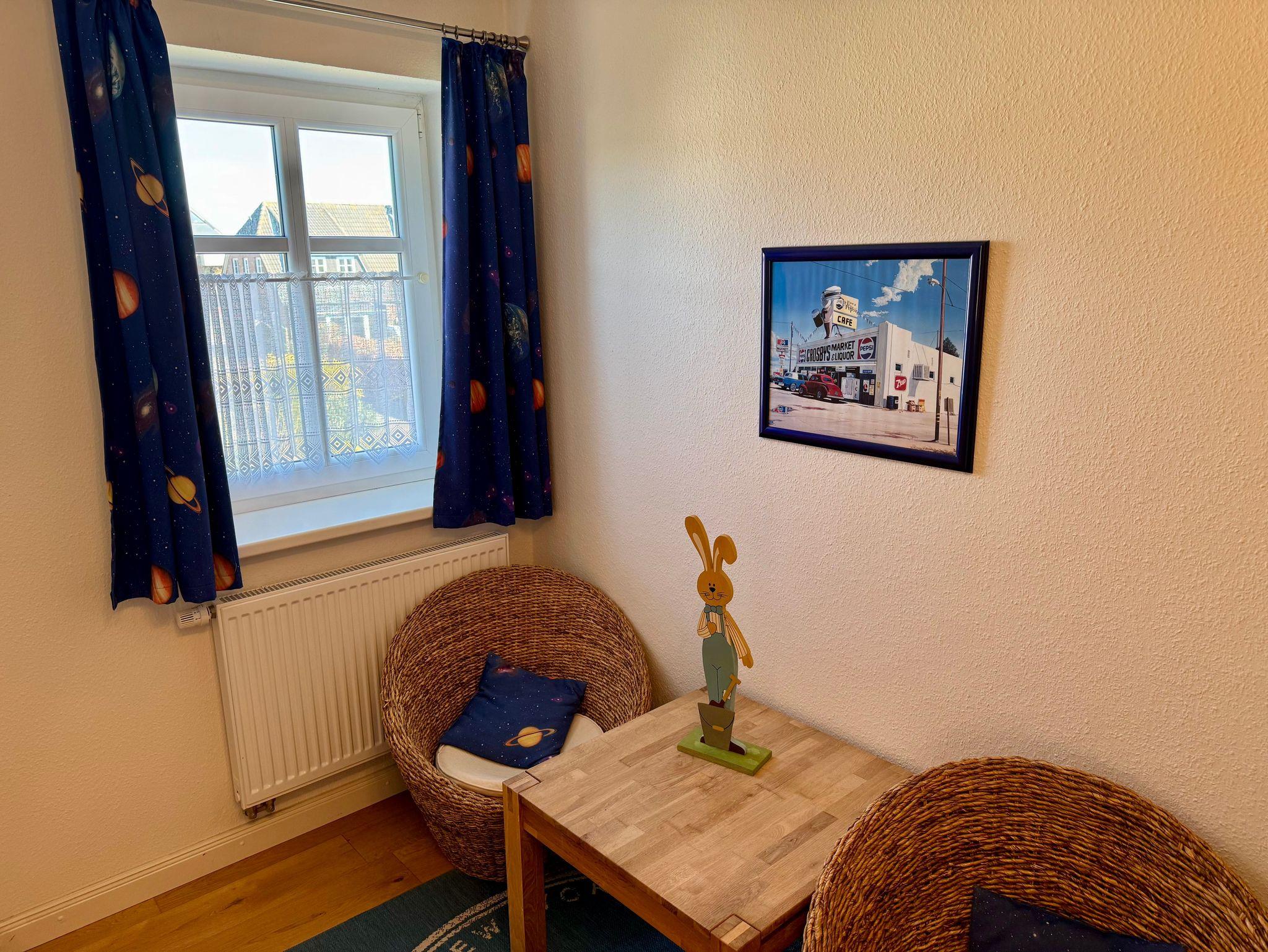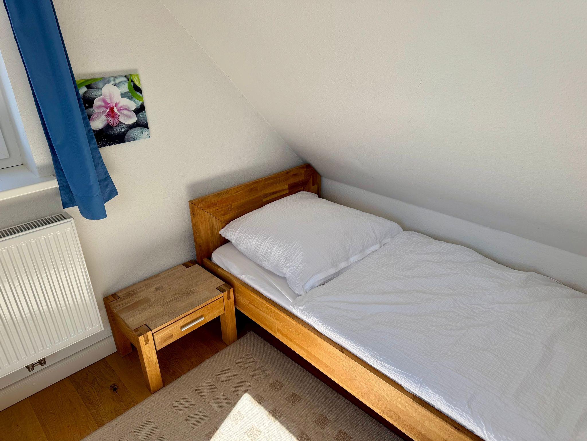 Das 'Haus im Halligweg' ist ein, in unmittelbarer Nähe zur Nordsee, liegendes Doppelhaus mit zwei völlig eigenständigen Haushälften. Es befindet sich direkt am Meer. Nur wenige Schritte werden benötigt, um vom Deich aus auf die Nordsee und die vorgelagerten Halligen zu schauen. Die Haushälfte ist ca. 90qm groß und ist für 2 bis 6 Personen geeignet. Im Erdgeschoss befinden sich das geräumige Wohnzimmer mit separatem Wohn- und Essbereich, die Küche mit einer modernen, komplett ausgestatteten Einbauküche mit Geschirrspülmaschine, Mikrowelle usw. Vom Flur aus ist ein zusätzliches Gäste-WC mit Dusche als 2. Bad zu erreichen, und vom Wohnzimmer aus geht es auf die möblierte Außenterrasse mit Strandkorb. Zwei Schlafzimmer, eines mit einem Doppelbett und ein weiteres mit zwei Einzelbetten sowie Dusche / WC befinden sich im 1. Stock, ein drittes Schlafzimmer mit ebenfalls zwei Einzelbetten im oberen, ausgebauten Giebelzimmer.
