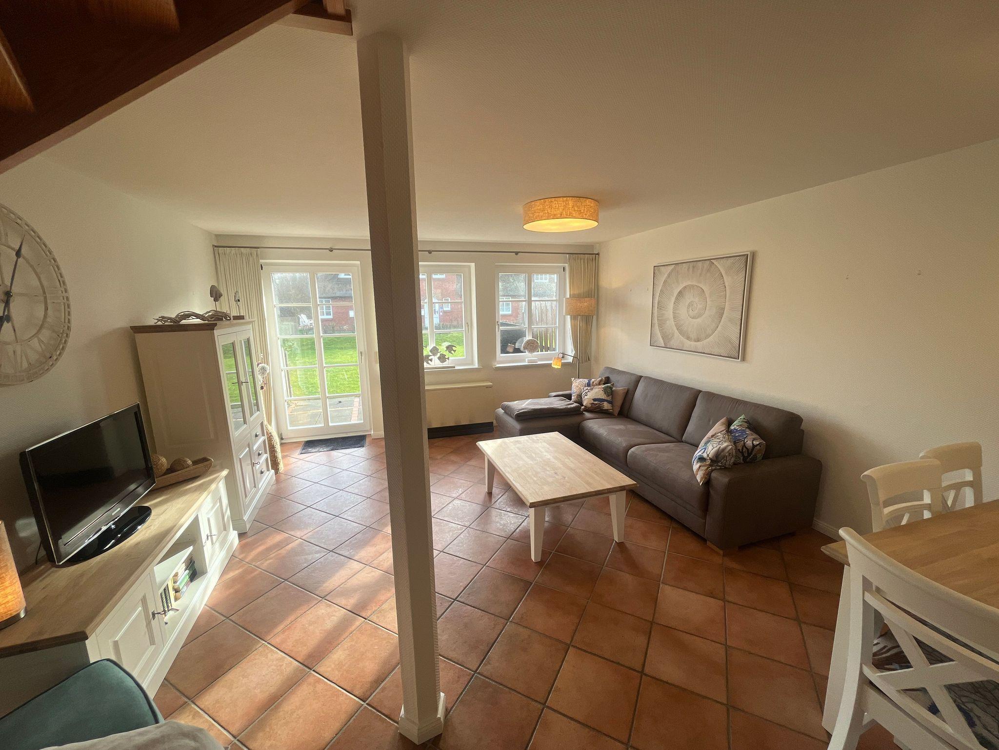 Der Friesenhof ist ein im typischen friesischen Stil erbautes Reetdachgebäude mit eigenständigen Hausteilen, gelegen im Kurzentrum Nordstrand. Der Hausteil Uttied ist ca. 90qm groß und ist für 2 bis 6 Personen geeignet. Im Erdgeschoss befinden sich das geräumige Wohnzimmer mit separatem Wohn- und Essbereich, die Küche mit einer komplett ausgestatteten Einbauküche mit Spülmaschine, Mikrowelle usw. Vom Flur aus ist ein zusätzliches Gäste-WC zu erreichen, und vom Wohnzimmer aus geht es auf die möblierte zum Süden liegende Außenterrasse mit eigenem Strandkorb. Zwei Schlafzimmer, eines mit einem Doppelbett und ein weiteres mit zwei Einzelbetten, sowie Dusche/WC befinden sich im 1. Stock, ein drittes Schlafzimmer mit zwei Einzelbetten in dem, als Galerie ausgebauten, Giebelzimmer. Das Haus verfügt über einen Glasfaseranschluss.