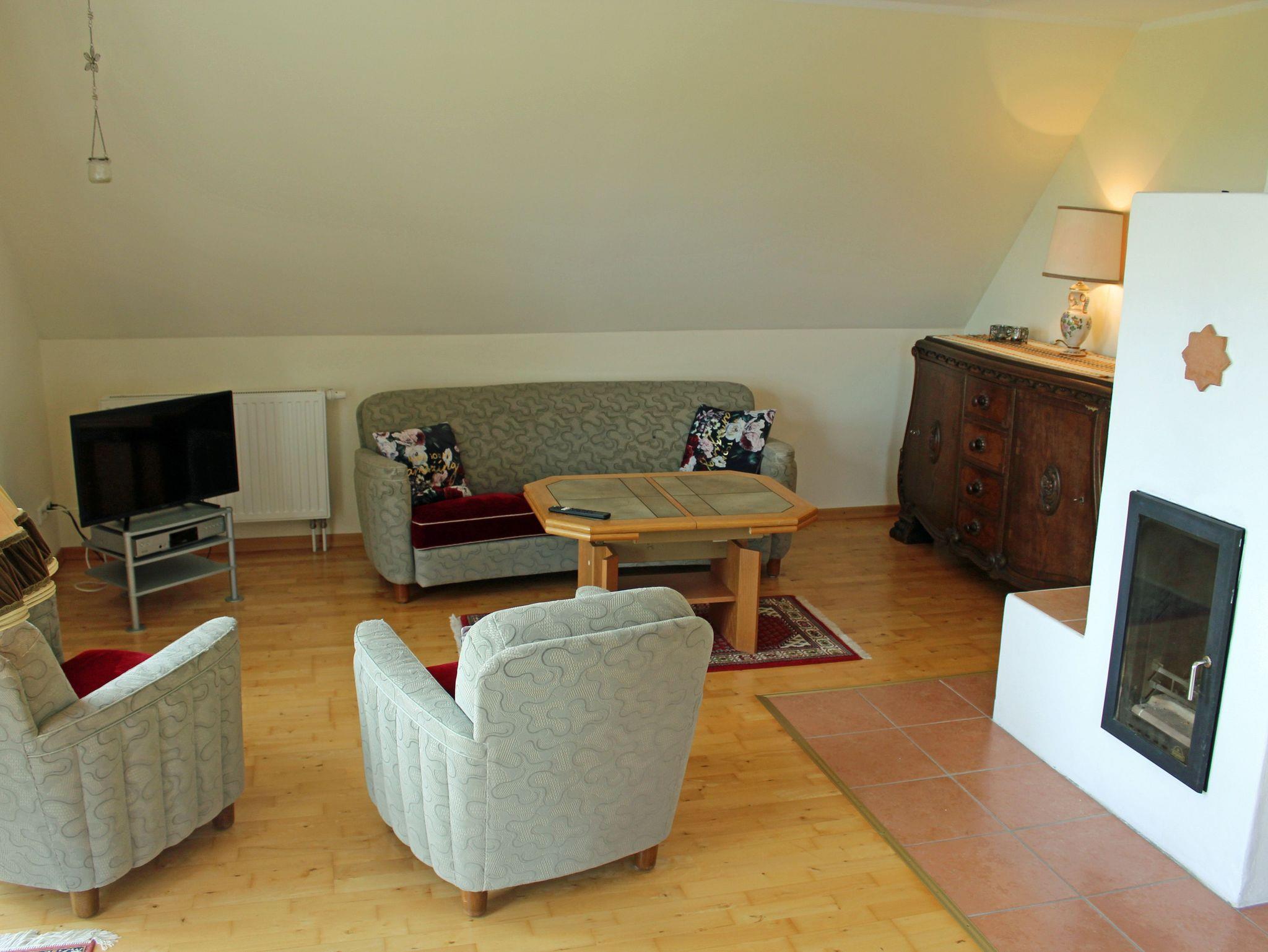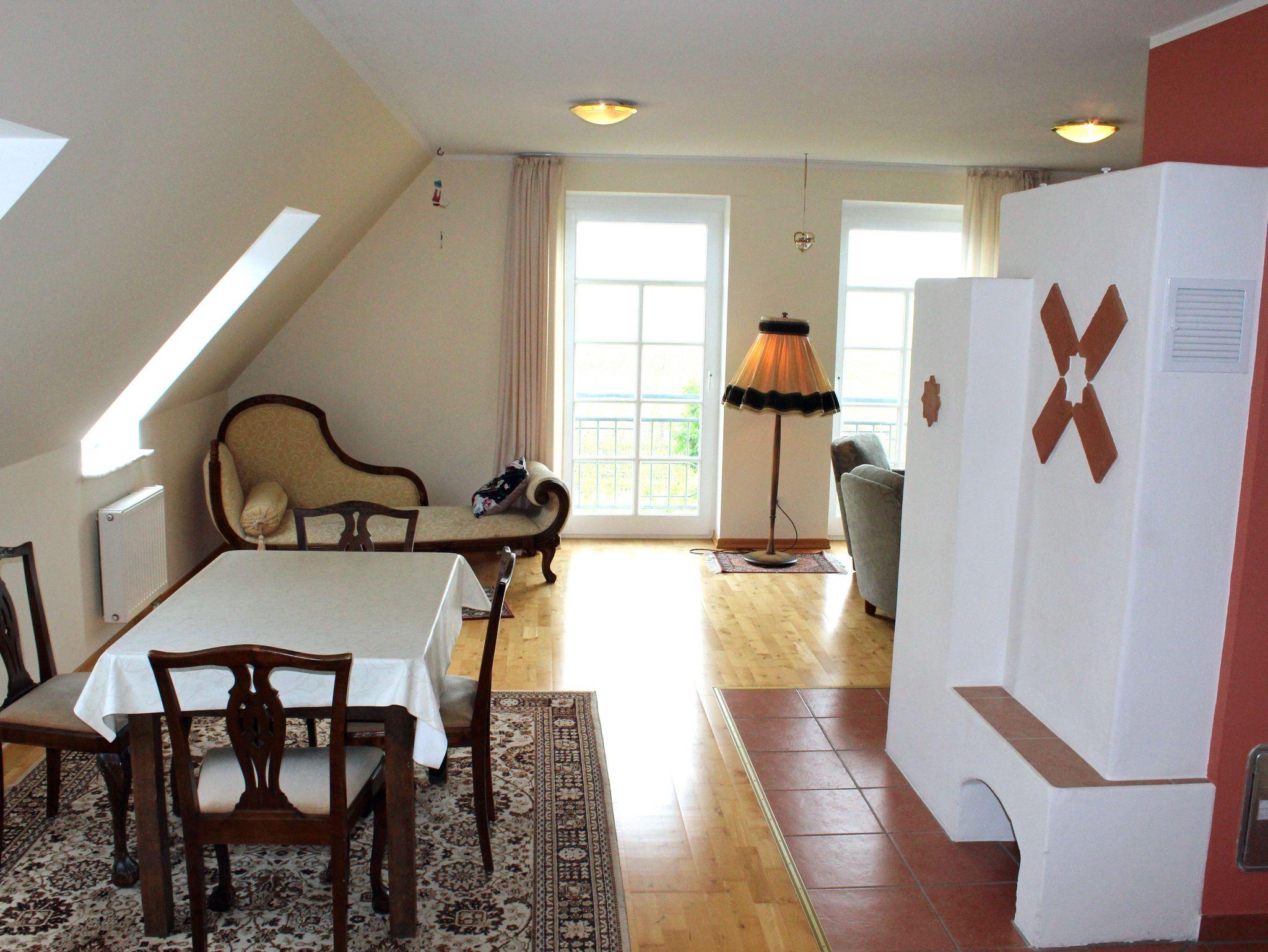 Herzstück der Wohnung ist das große Wohnzimmer mit Esstisch, Kamin und gemütlicher Sitzecke. Die Küche ist vollausgestattet inkl. Geschirrspüler. Im hellen Badezimmer wartet eine Duschwanne auf Sie.