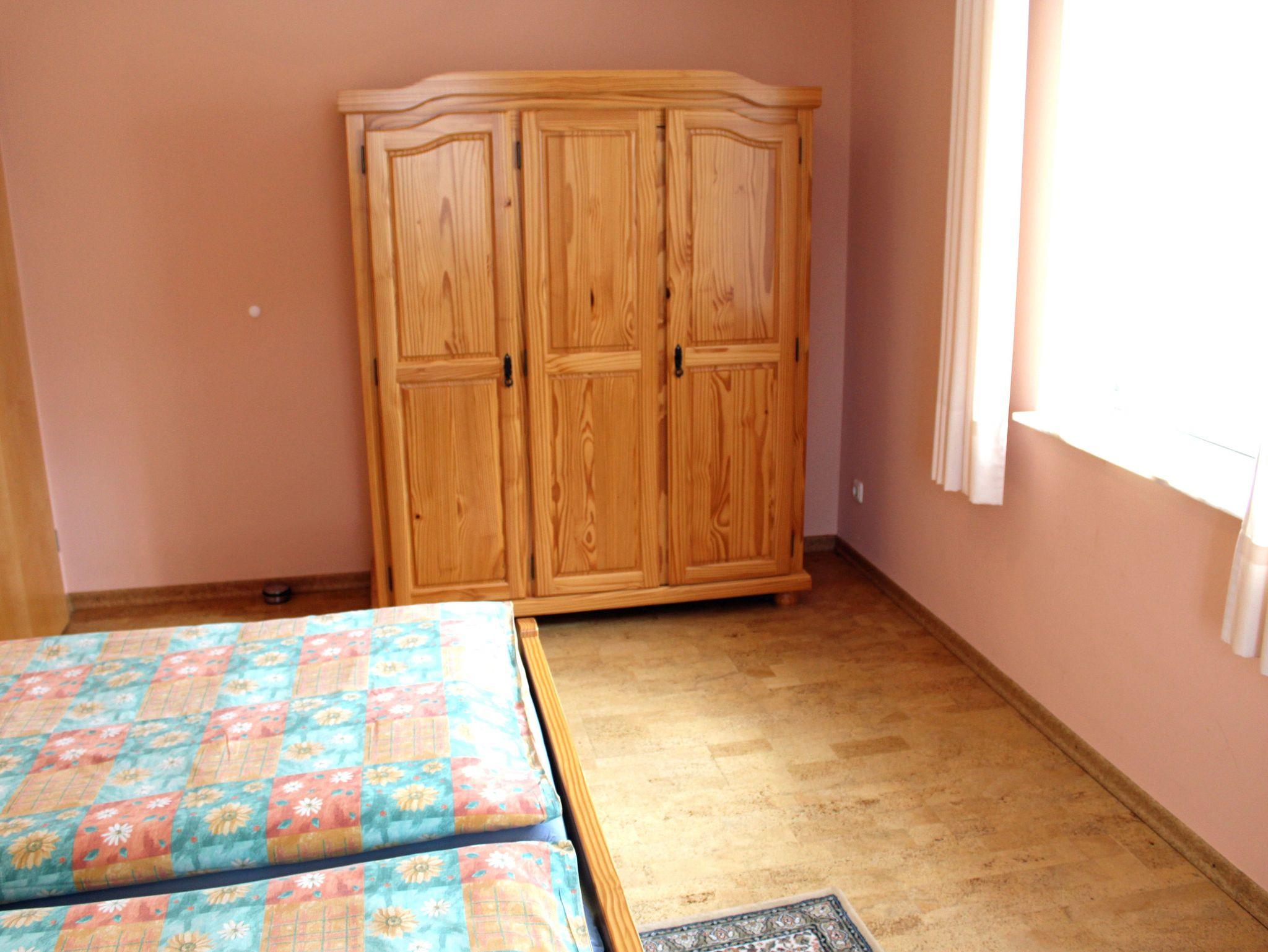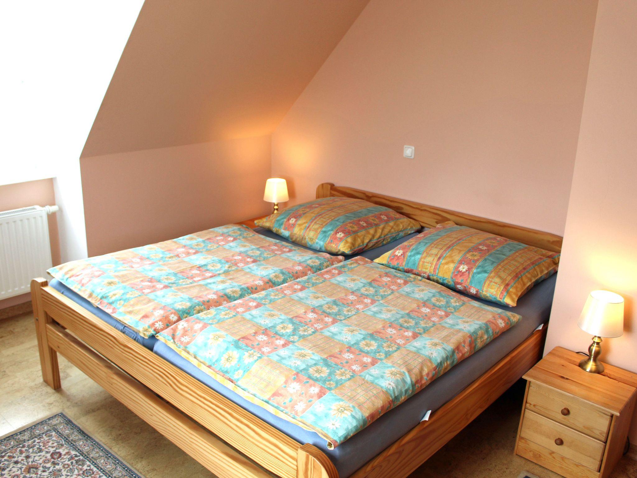 Im ersten Stock des Anwesens befindet sich die großzügige und wunderschön eingerichtete Wohnung. Sie verfügt über zwei Schlafzimmer, eines mit Doppelbett, das andere mit zwei EInzelbetten.