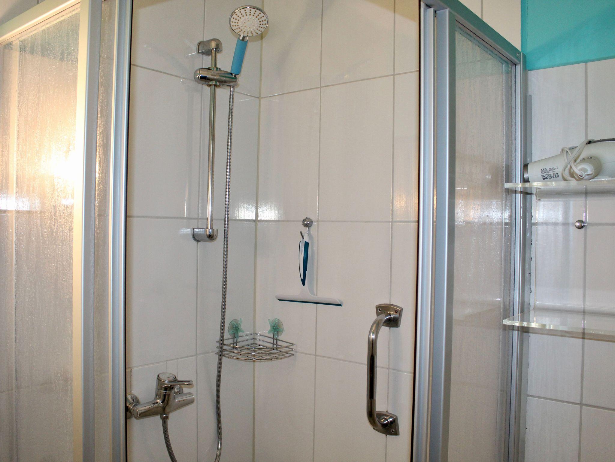 Das gemütliche Domizil verfügt über ein stilvolles Duschbadad.