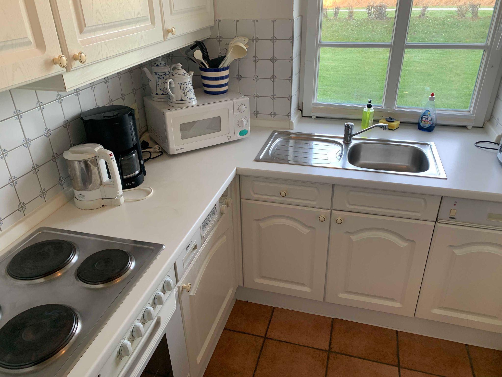Im Erdgeschoss erwartet Sie ein einladendes Wohnzimmer mit separatem Wohn- und Essbereich. Die Küche ist vollständig ausgestattet und verfügt über eine Spülmaschine, Mikrowelle und weitere praktische Küchengeräte. Vom Flur aus erreichen Sie ein zusätzliches Gäste-WC. Vom Wohnzimmer aus gelangen Sie auf die sonnige, möblierte Südterrasse mit eigenem Strandkorb ? perfekt zum Entspannen.
