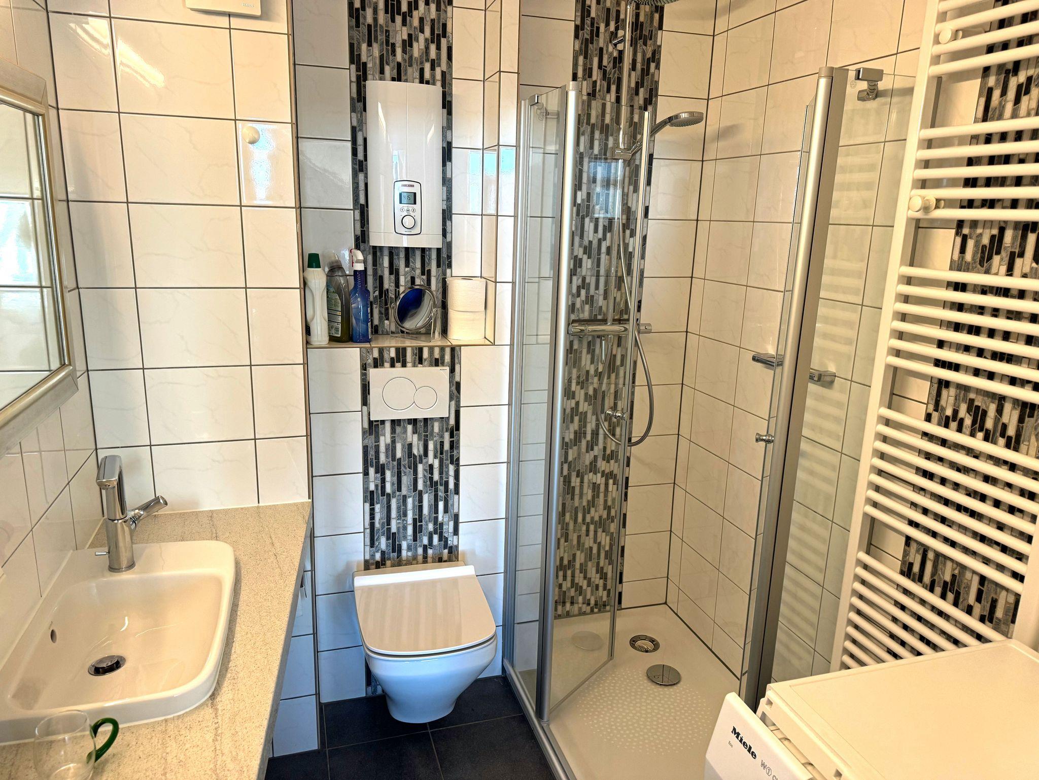 Die frisch renovierte Ferienwohnung verfügt über ein gemütliches Wohnzimmer, eine Essecke, eine voll ausgestattete Küche mit Geschirrspüler sowie ein separates Schlafzimmer mit einem bequemen Doppelbett. Angrenzend befindet sich ein modernes Duschbad, das zusätzlich mit einer Waschmaschine ausgestattet ist.