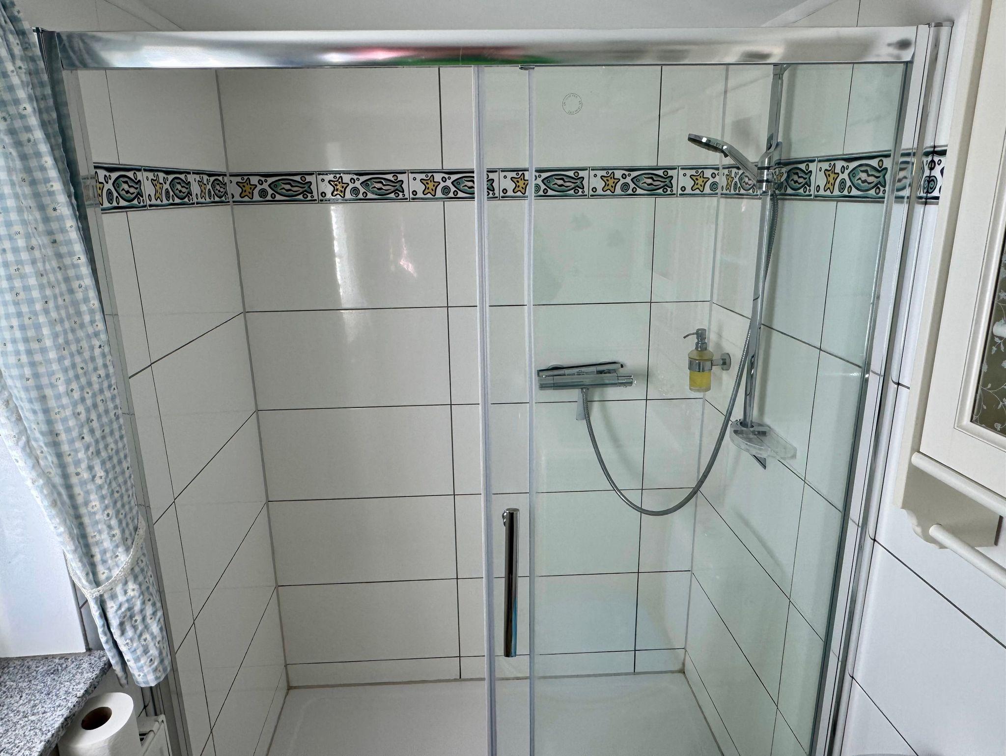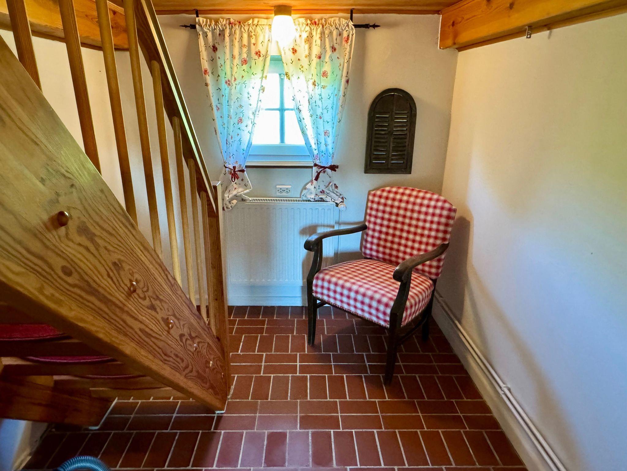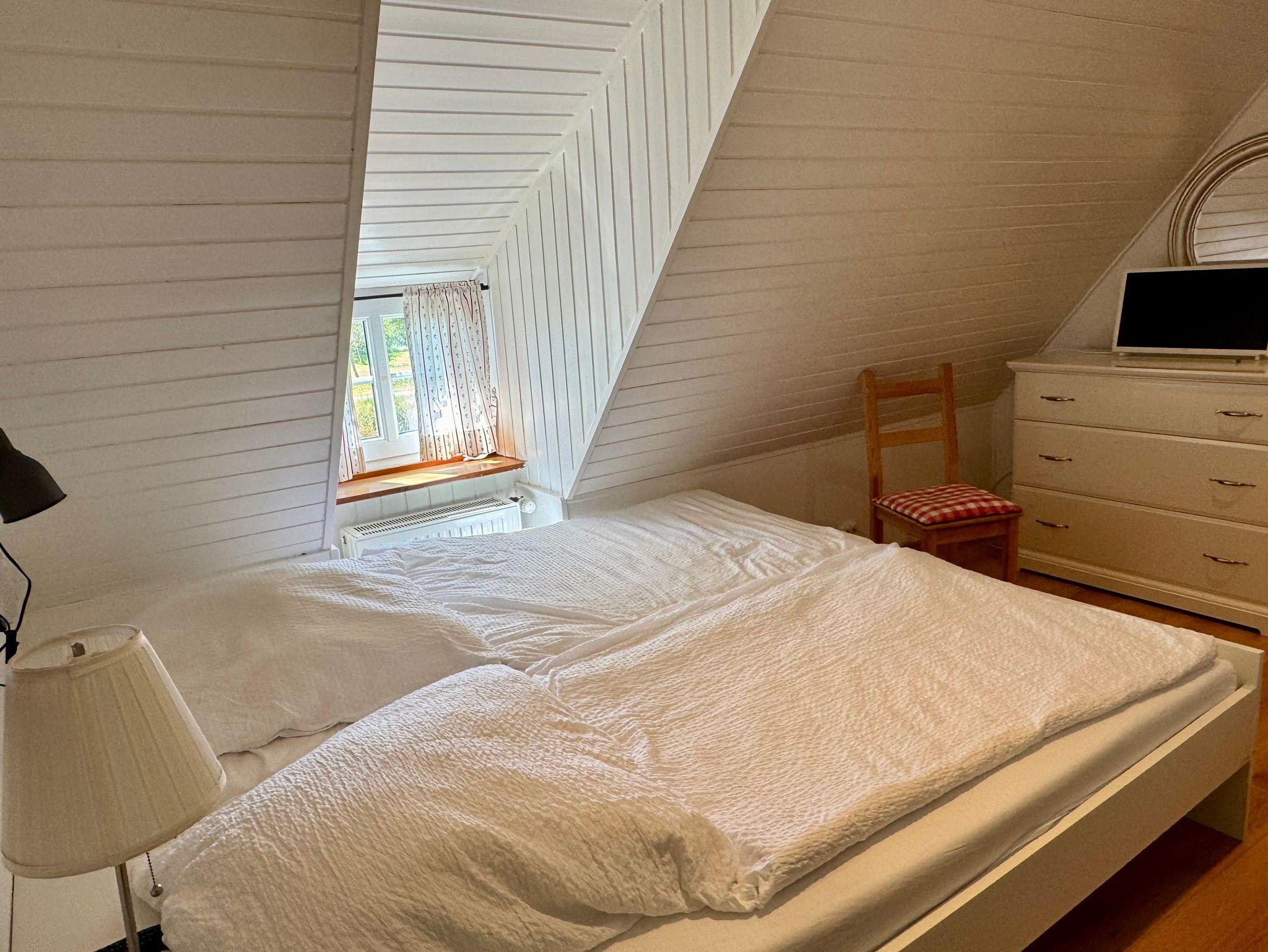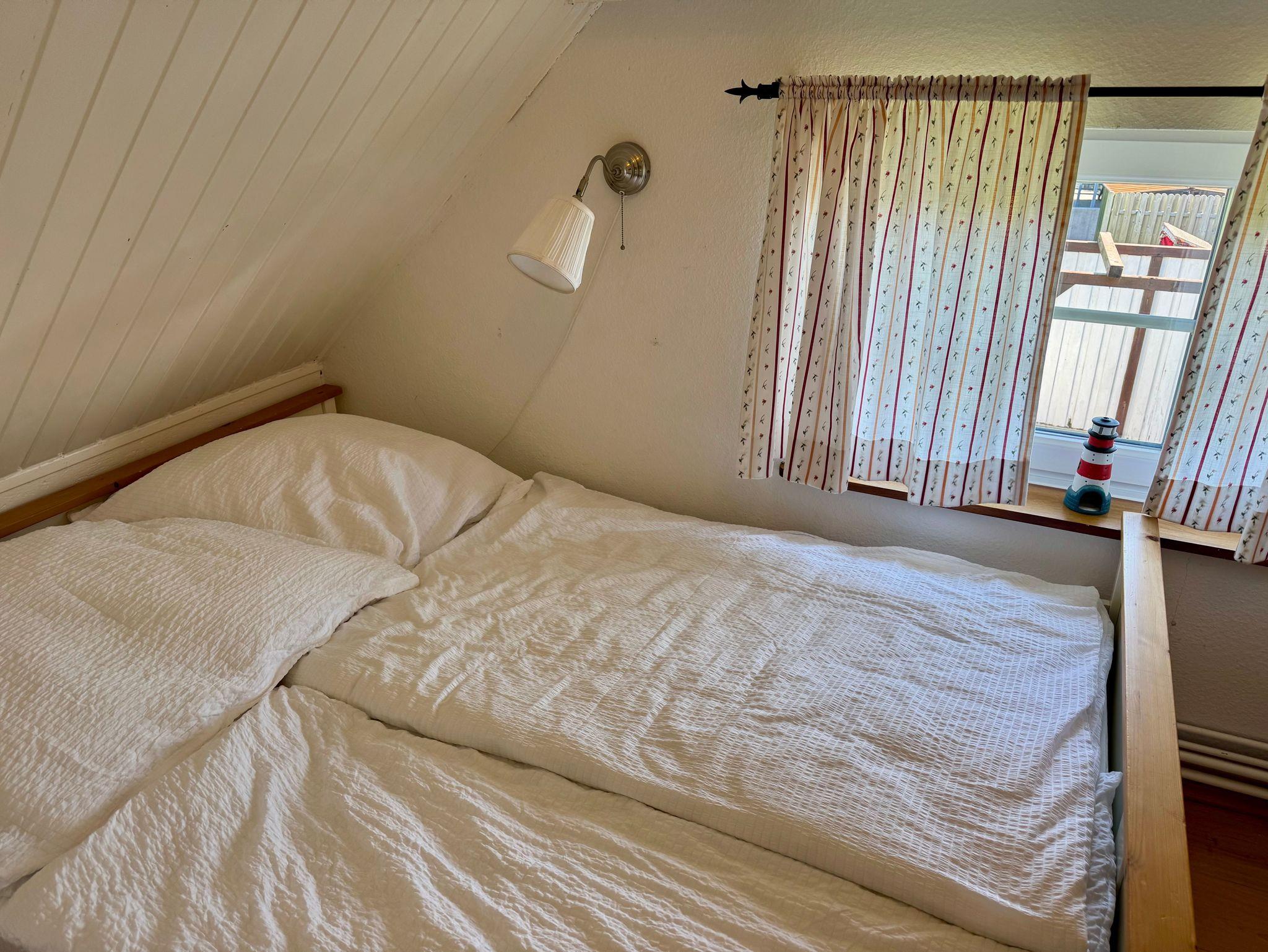 Das Friesenhus bietet im Erdgeschoß ein Duschbad mit bodengleicher Dusche, eine gut ausgestattete Küche und das Wohnzimmer mit Sitzecke. Über die kleine Treppe geht es nach oben in das, galleriemäßig offen gelassene Schlafzimmer mit Doppelbett (180cmx200cm). Da hinter findet sich das kleine Schlafzimmer mit französischem Doppelbett (120cmx200).