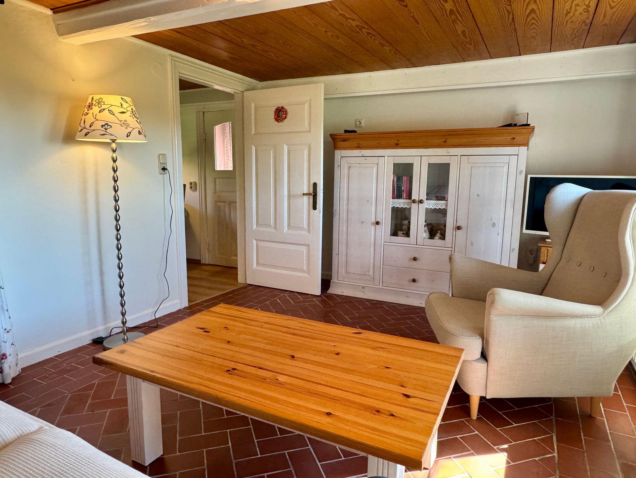 Das historische Friesenhus unter Reet liegt direkt am Außendeich am Norderhafen auf Nordstrand. Es wurde 2025 aufwändig renoviert, hat aber den Charme des Baujahres 1870 noch eingefangen. Dies spiegelt sich unter anderem in der niedrigen Deckenhöhe und Balkenlage wieder.