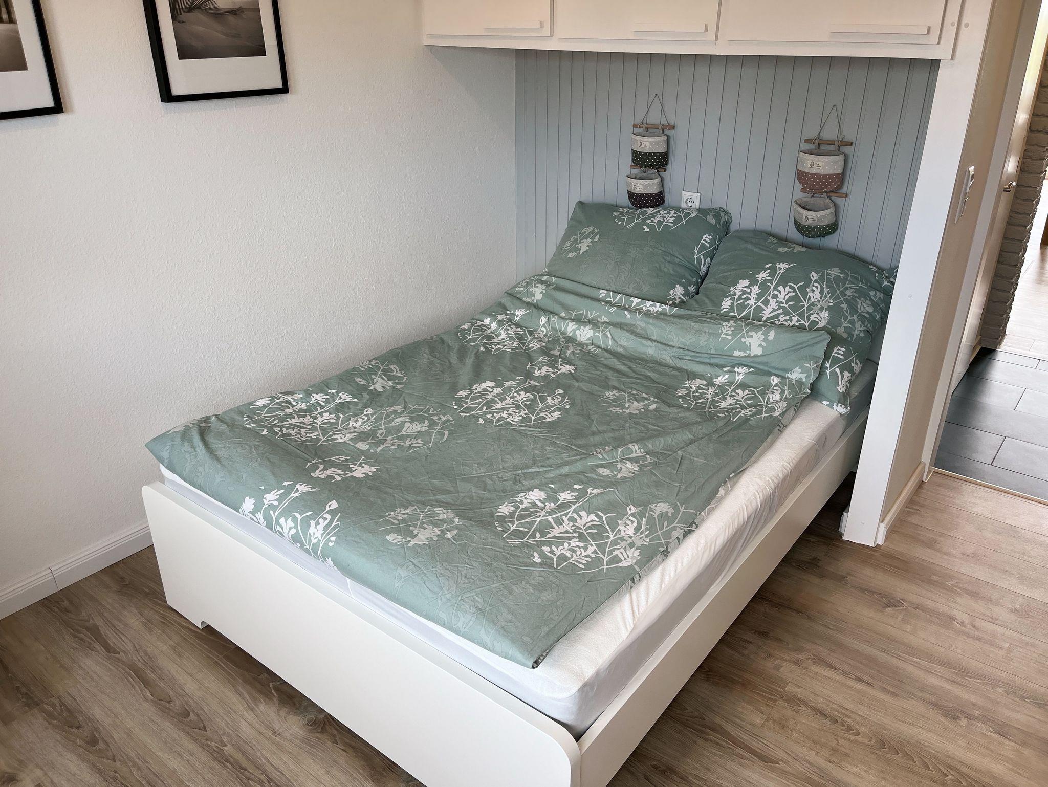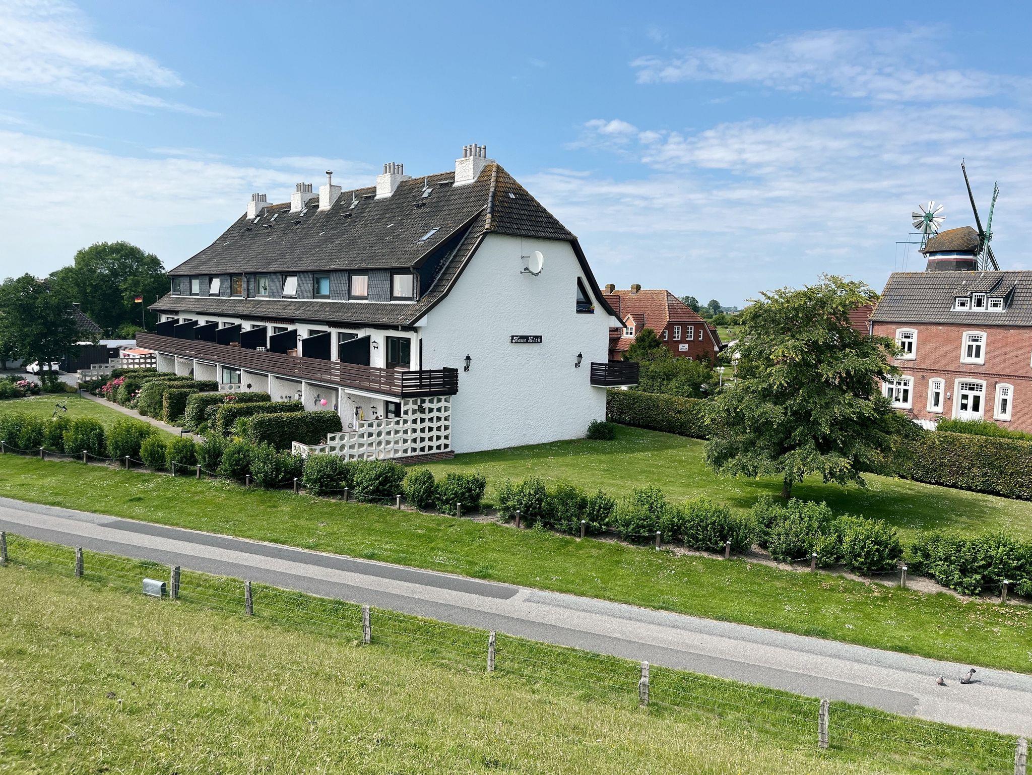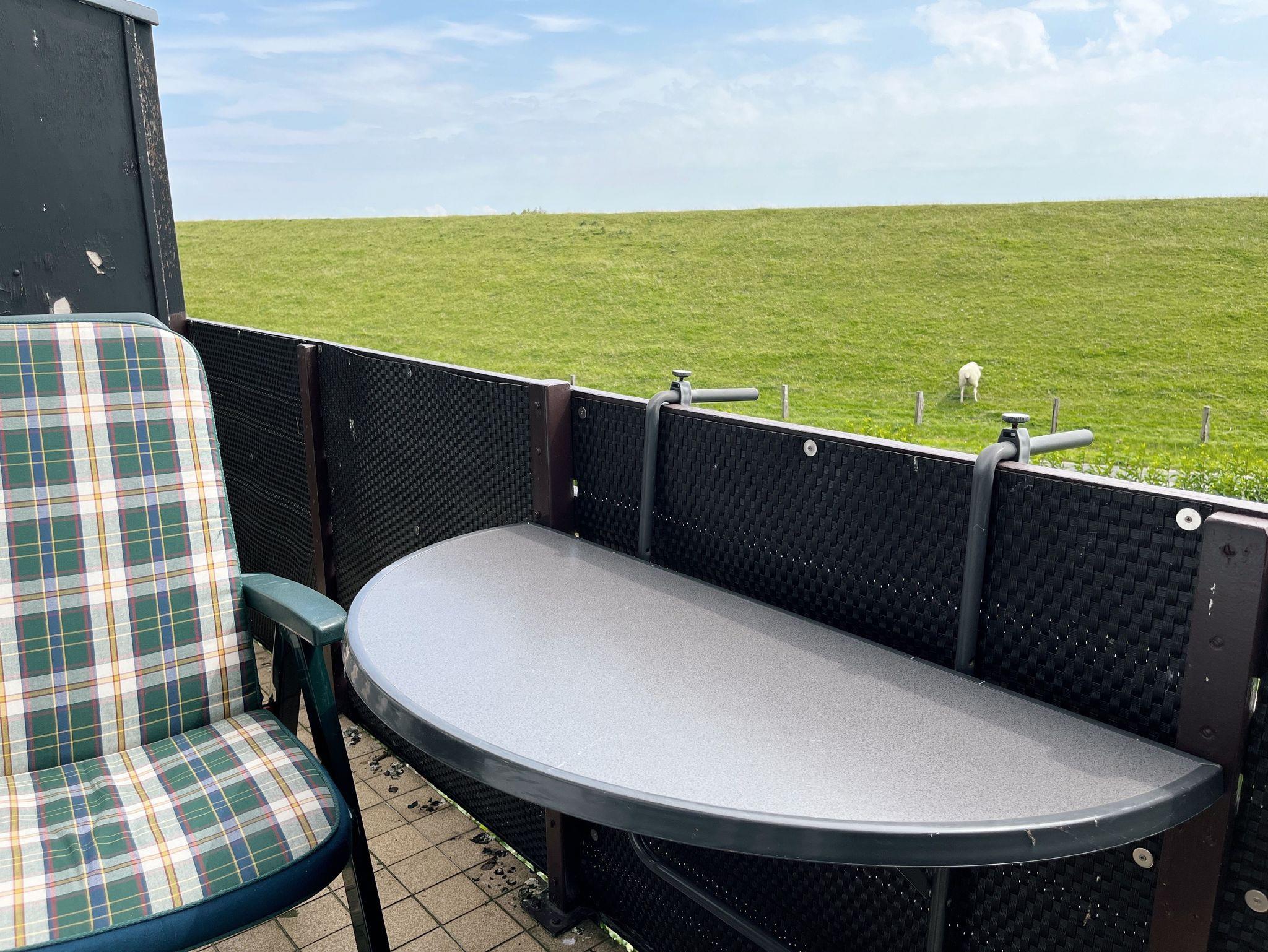 Freuen Sie sich auf ein behagliches Doppelbett mit Blick auf die historische Engelmühle, eine charmante Küchenzeile mit integrierter Waschmaschine, ein modernes Duschbad und ein großzügiges Wohnzimmer mit einladender Essecke. Der große, liebevoll eingerichtete Balkon mit Ausblick auf den Süderhafen lädt dazu ein, entspannte Stunden zu genießen ideal, um die vorbeiziehenden Schafe zu beobachten - der Deich nur 15 Meter entfernt liegt.
