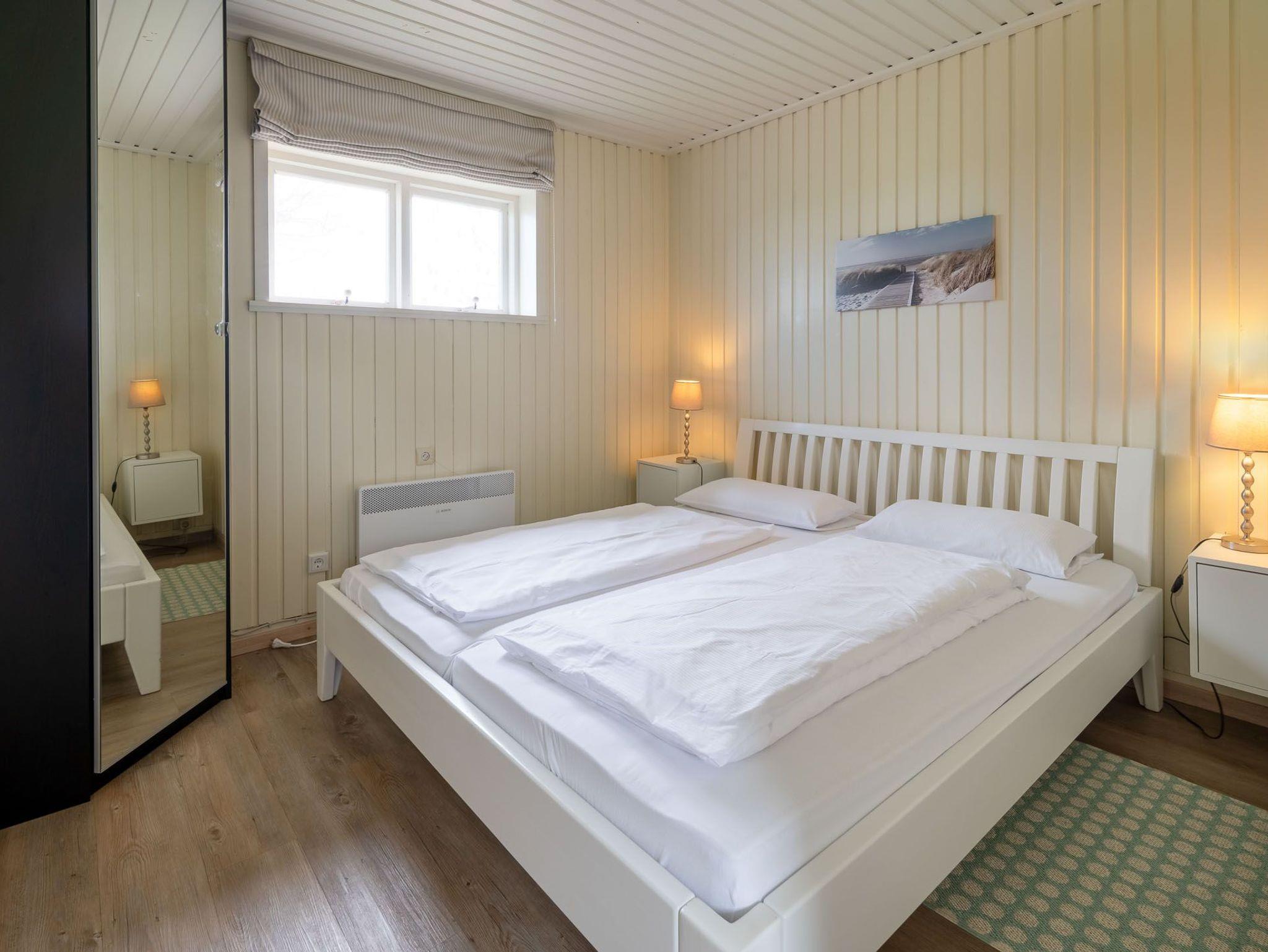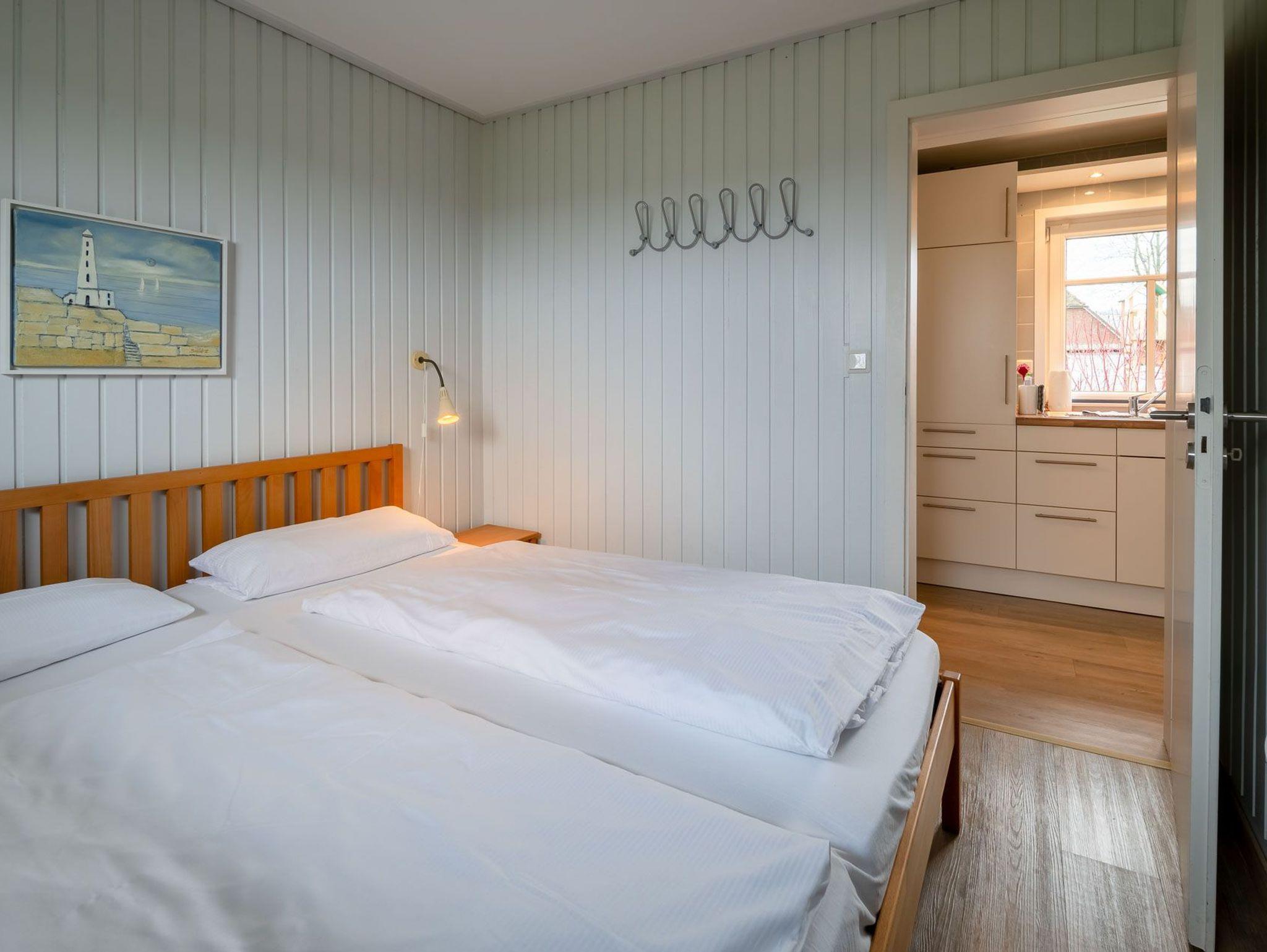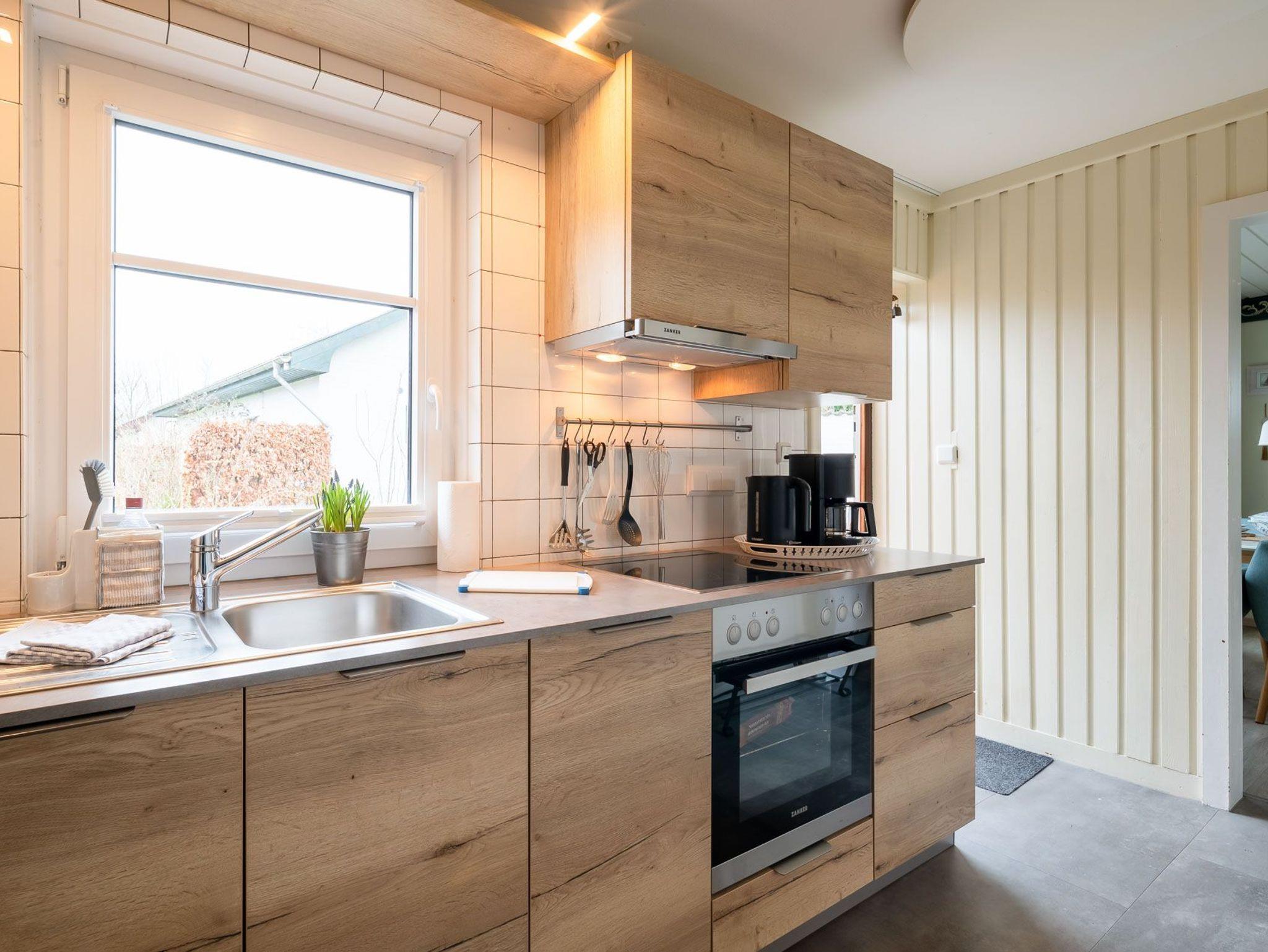 Erleben Sie einen erholsamen Urlaub in Haus Kai, einem eingeschossigen Ferienhaus für bis zu 4 Personen. Das Haus verfügt über ein Wohnzimmer, zwei Schlafzimmer, eine Küche und ein Duschbad. Ein Gaskaminofen im Wohnzimmer sorgt für wohlige Wärme. Die Einbauküche ist mit Herd/Ceranfeld, Backofen, Spülmaschine, Kaffeemaschine, Wasserkocher und Toaster ausgestattet.