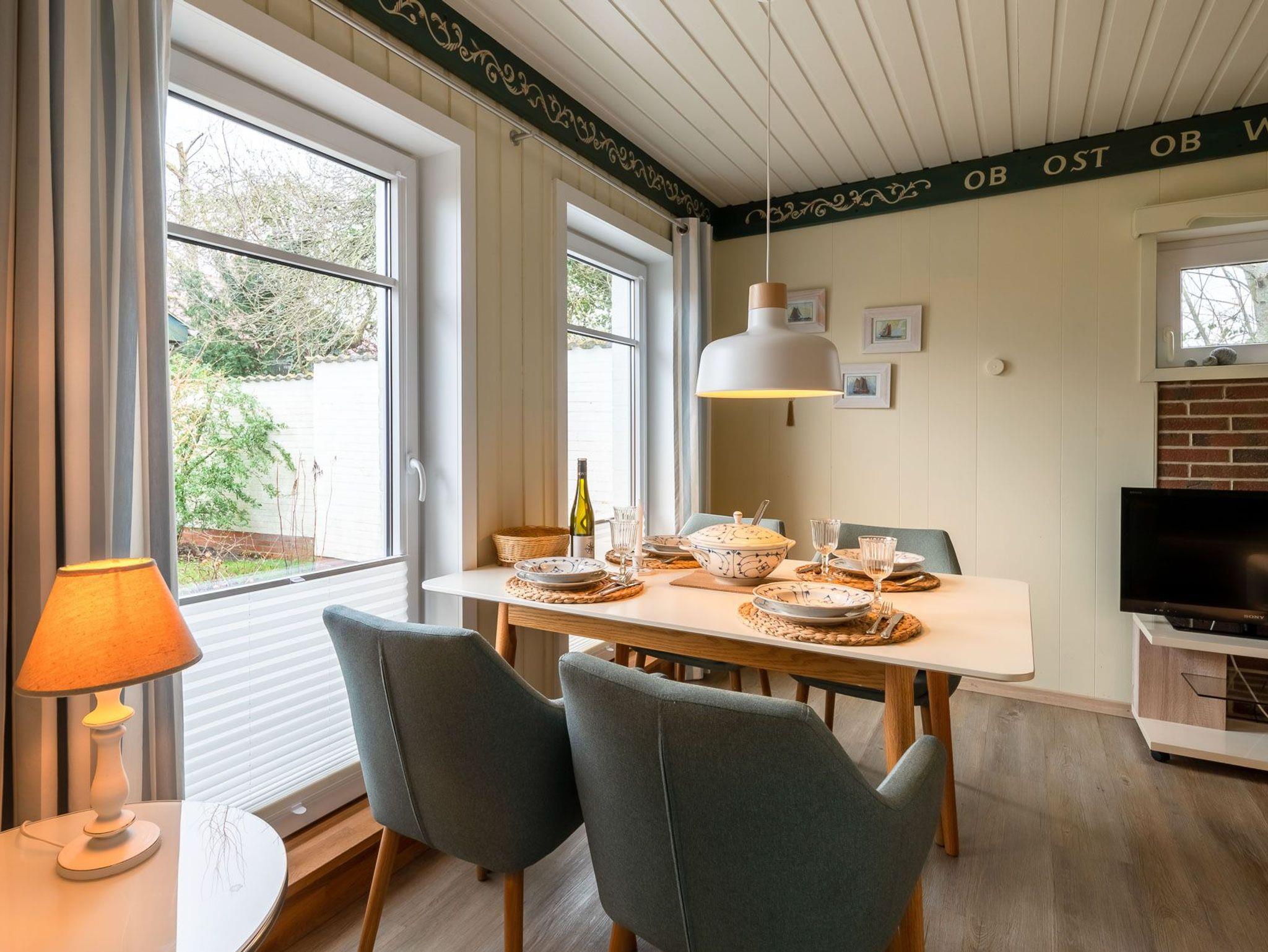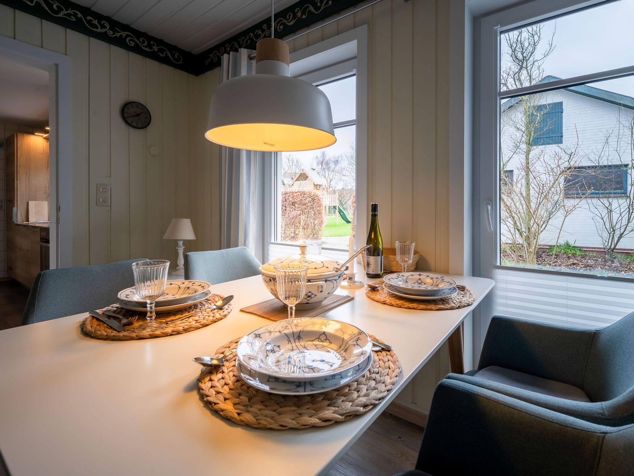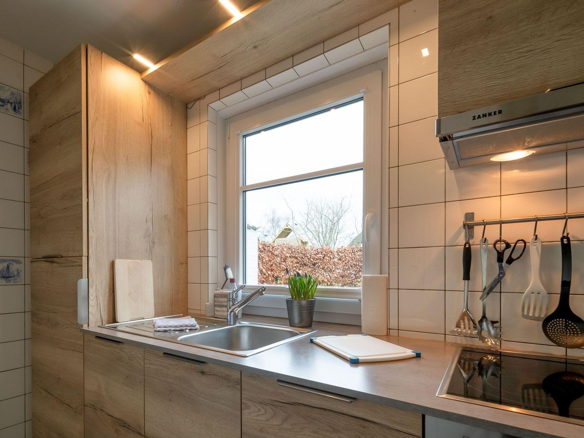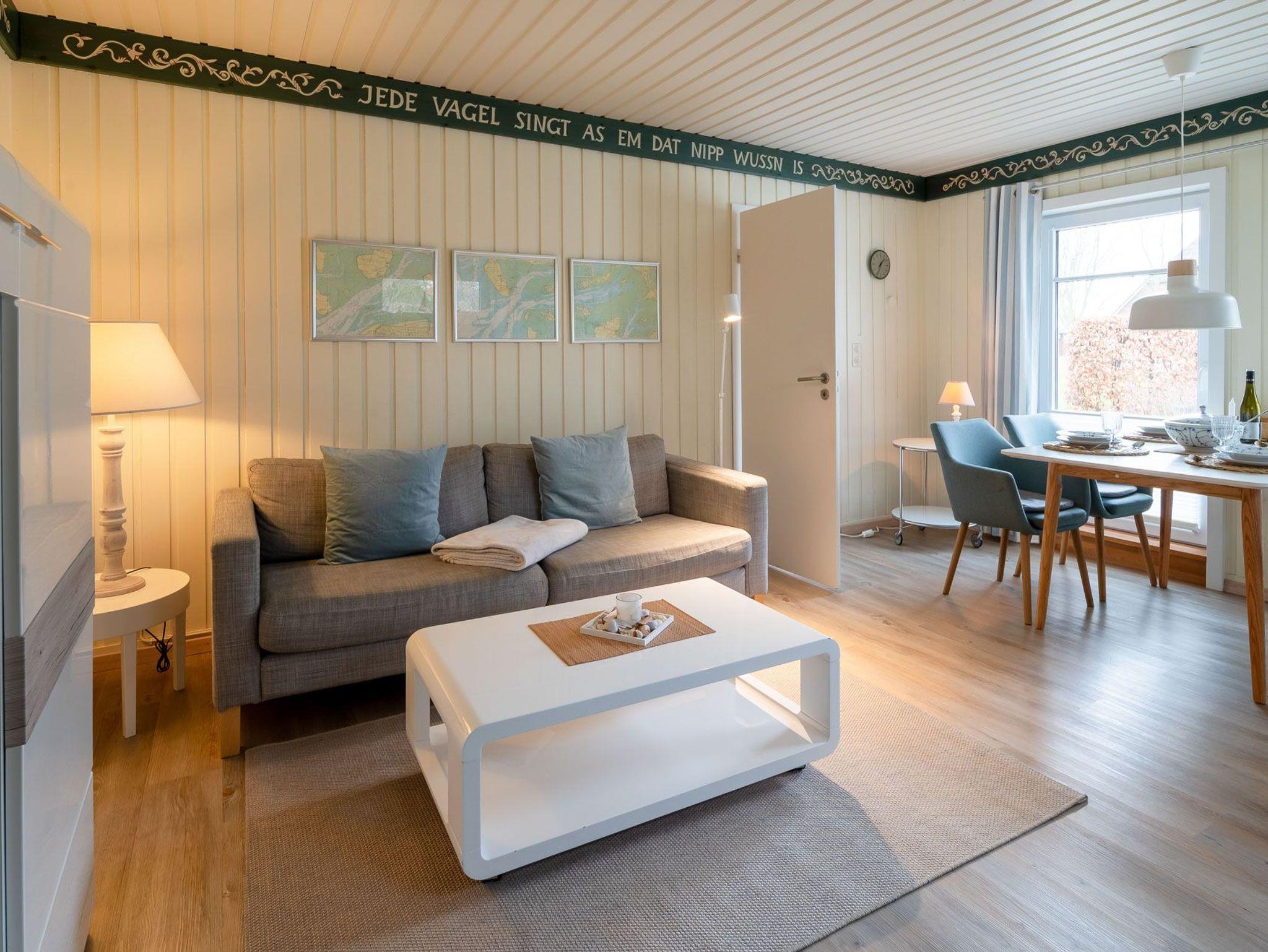 Erleben Sie einen erholsamen Urlaub in Haus Kai, einem eingeschossigen Ferienhaus für bis zu 4 Personen. Das Haus verfügt über ein Wohnzimmer, zwei Schlafzimmer, eine Küche und ein Duschbad. Ein Gaskaminofen im Wohnzimmer sorgt für wohlige Wärme. Die Einbauküche ist mit Herd/Ceranfeld, Backofen, Spülmaschine, Kaffeemaschine, Wasserkocher und Toaster ausgestattet.