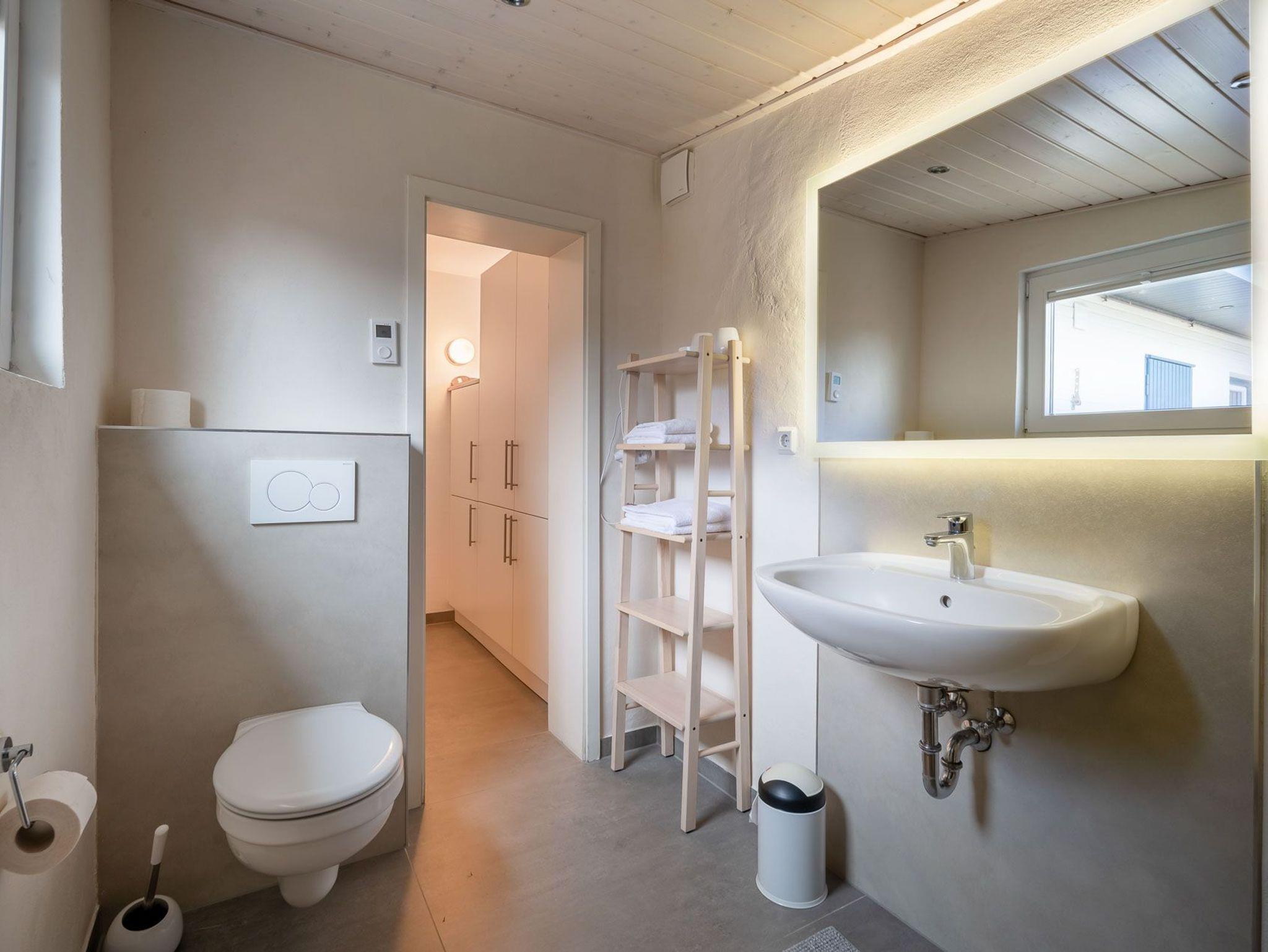 Das Schlafzimmer verfügt über ein Doppelbett (180x200cm) und ein weiteres Schlafzimmer mit ausziehbarem Doppelbett (160x200cm) sorgen für angenehmen Schlafkomfort für bis 4 Personen. Ein schönes Duschbad mit ebenerdiger Dusche, Fön, hängendem WC und beheiztem Handtuchwärmer bieten modernes Urlaubswohngefühl. Ein eigener PKW-Stellplatz, der mit dem Namen des Hauses gekenzzeichnet ist und Waschmaschine/Trockner im Gemeinschaftsserviceraum stehen ebenfalls zur Verfügung. Fahrräder können geschützt abgestellt werden. EIne Erstausstattung an Bettwäsche und Handtüchern kann optional für 20€ pro Person hinzugebucht werden.
