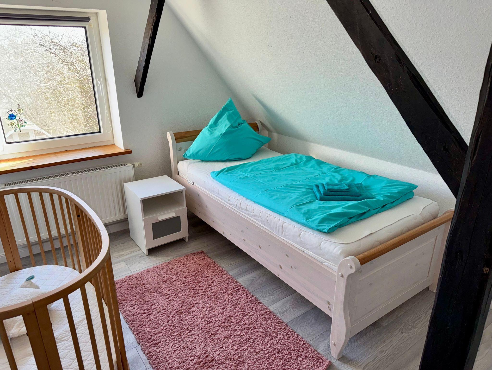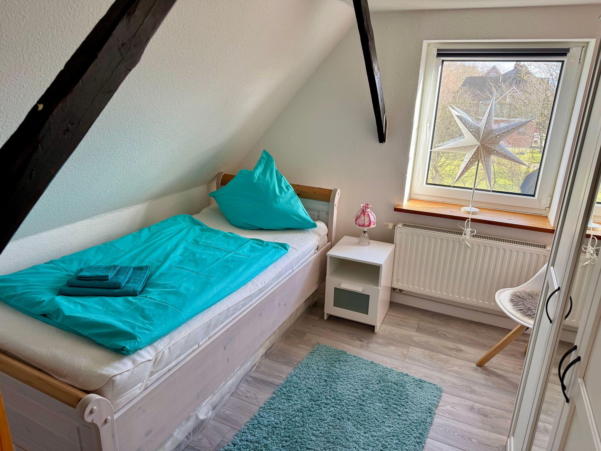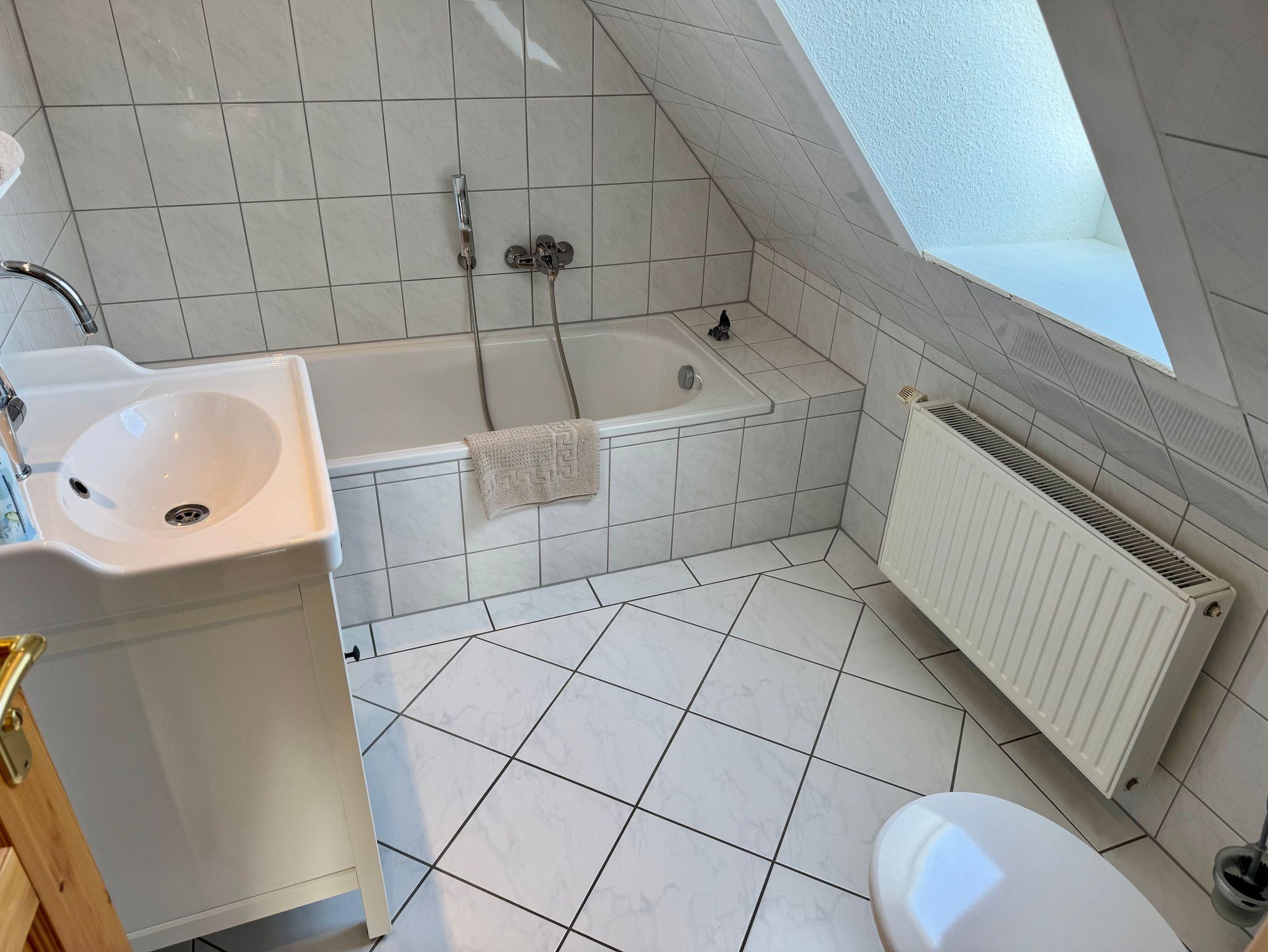 Im Obergeschoss erwarten Sie drei geschmackvoll eingerichtete Schlafzimmer: Ein Zimmer mit komfortablen Doppelbett, während die beiden weiteren jeweils Einzelbetten bieten. Zudem steht Ihnen im Obergeschoss ein stilvolles Badezimmer mit Badewanne zur Verfügung, während im Erdgeschoss ein weiteres Bad mit Dusche auf Sie wartet.