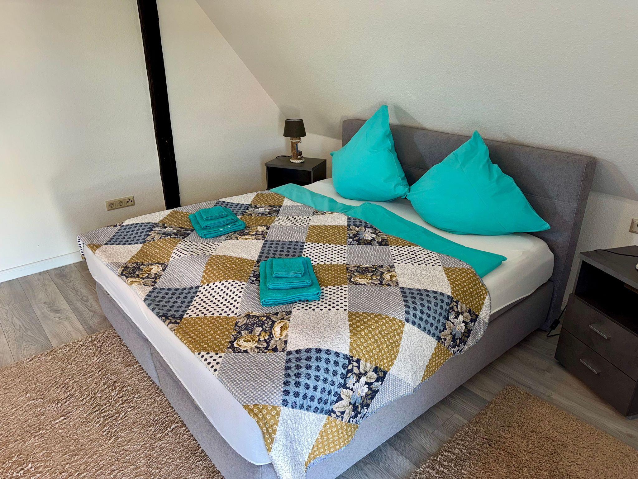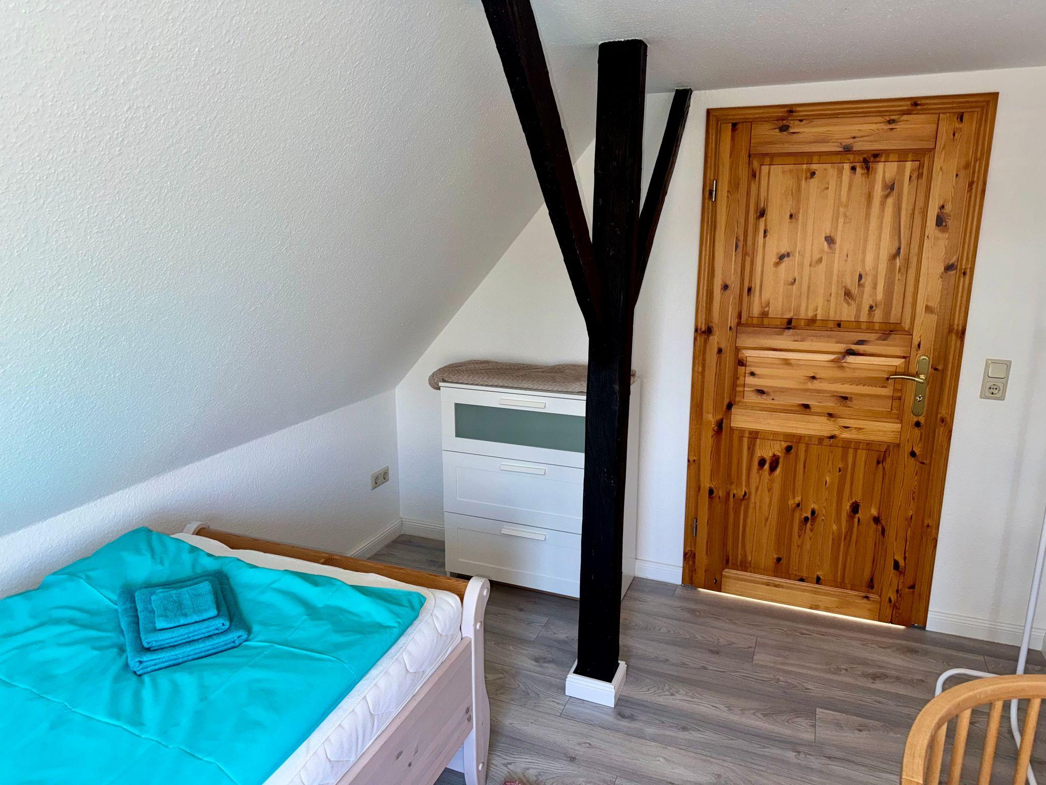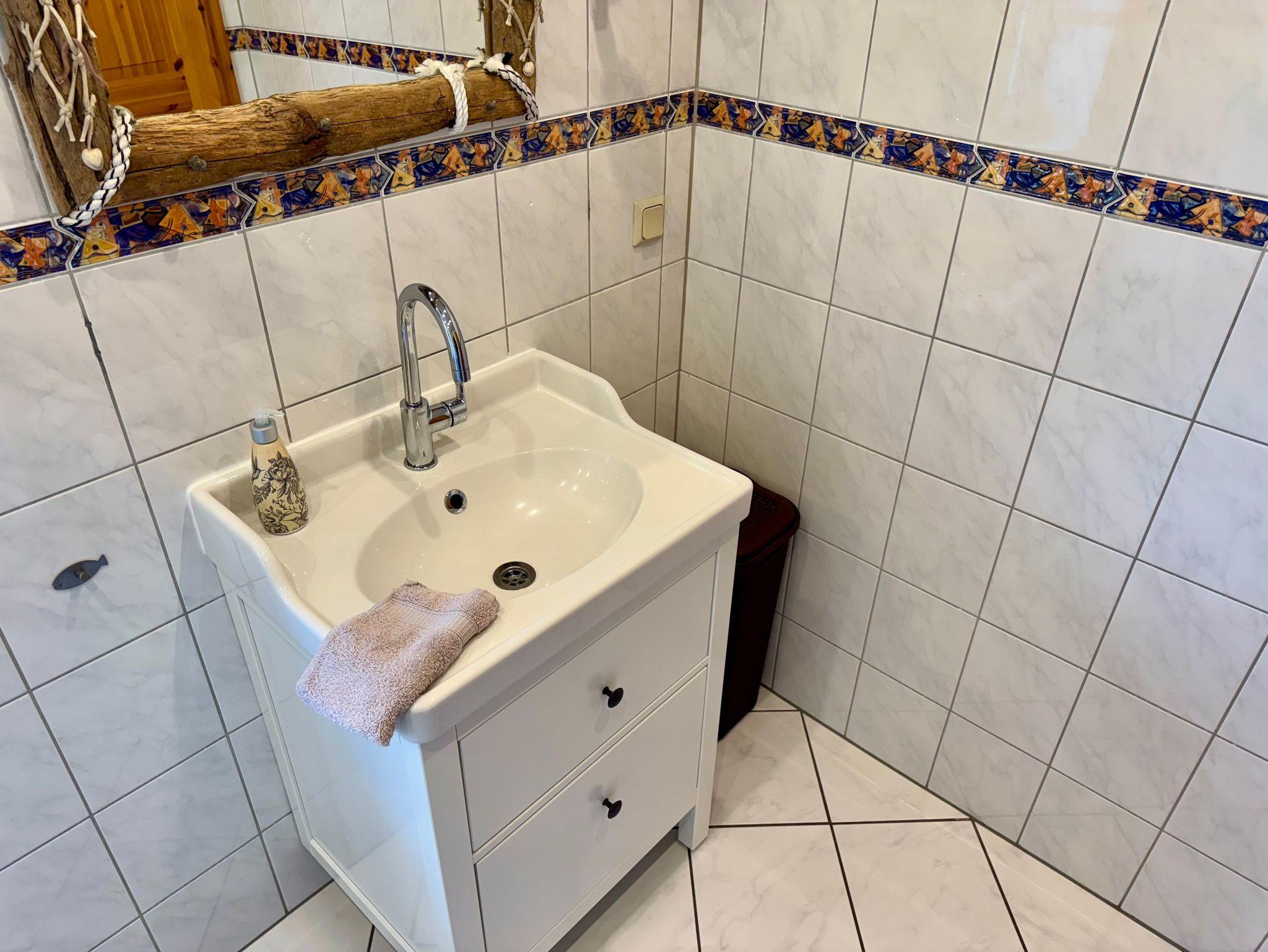 Im Obergeschoss erwarten Sie drei geschmackvoll eingerichtete Schlafzimmer: Ein Zimmer mit komfortablen Doppelbett, während die beiden weiteren jeweils Einzelbetten bieten. Zudem steht Ihnen im Obergeschoss ein stilvolles Badezimmer mit Badewanne zur Verfügung, während im Erdgeschoss ein weiteres Bad mit Dusche auf Sie wartet.