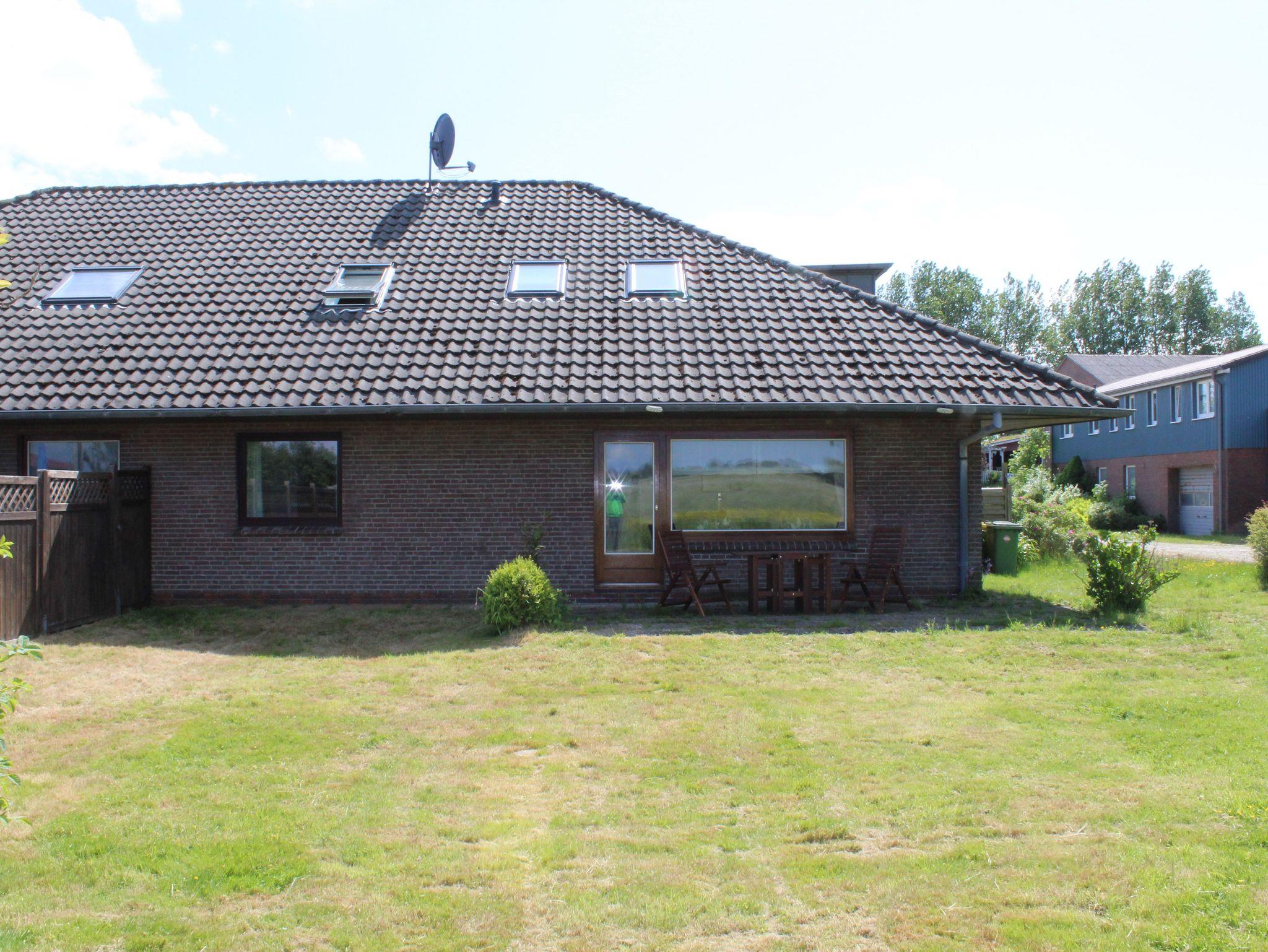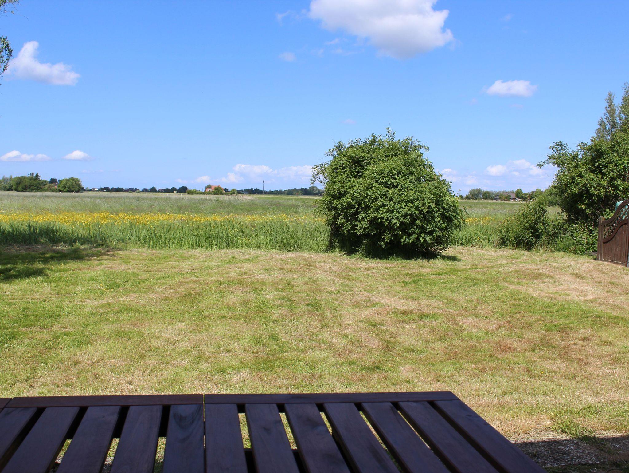 Vom Garten aus (Südlage) können Sie unverbaut auf die Nordstrander Wiesen schauen und auch Rehe und Hasen erblicken.