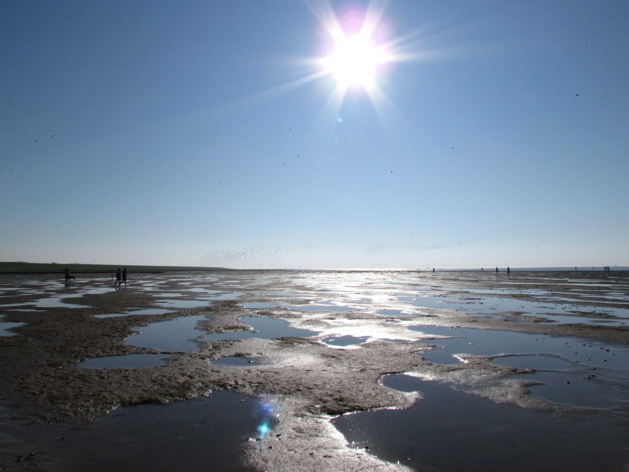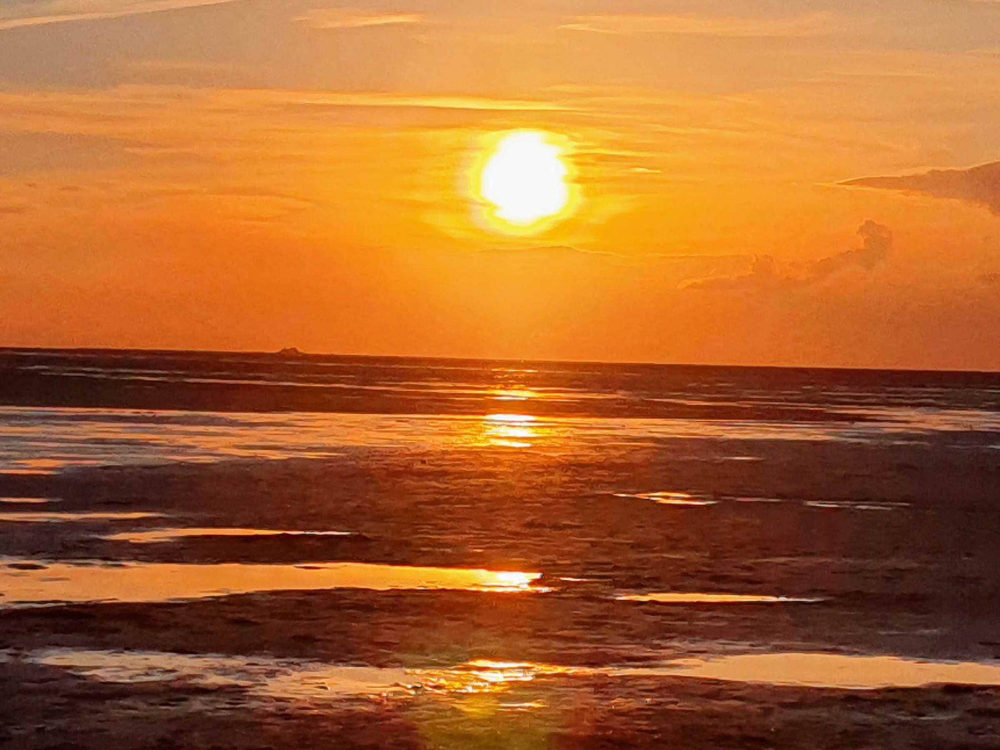 Das Auto kann man stehen lassen, um runter an den Deich zu laufen oder zu radeln, von wo die schönsten Sonnenuntergänge der Welt betrachtet werden können (O-Ton diverse Stammgäste).