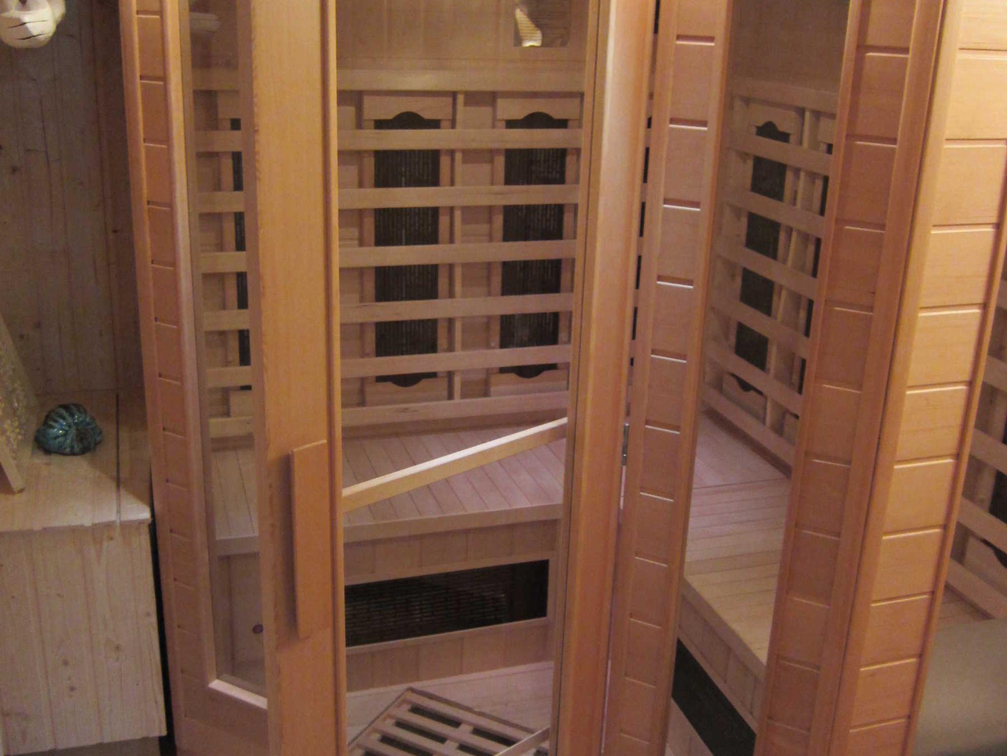 Der 2020 renovierte Wirtschaftsraum im Deichhaus Nordstrand (direkt angrenzend an den dazugehörigen Garten und mit separatem eigenem Eingang) ist ausgestattet mit Waschmaschine, Trockner, Bügelbrett, Bügeleisen, sowie Infrarot-Saunaund kann von den Bewohnern des Roten Atelierhauses mit genutzt werden.