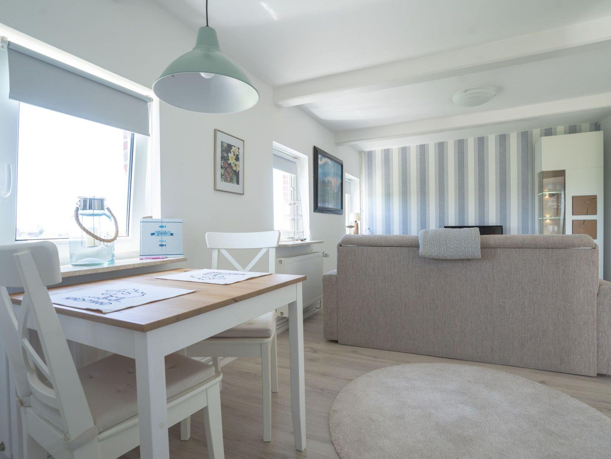 In der separaten Küche bereiten Sie mühelos Frühstück oder ein leichtes Abendessen zu. Ein modernes Duschbad sorgt für frische Momente nach einem Tag an der Nordsee. Vor der Haustür wartet Ihre eigene Terrasse perfekt für Sonnenstunden und ein Glas Wein am Abend.