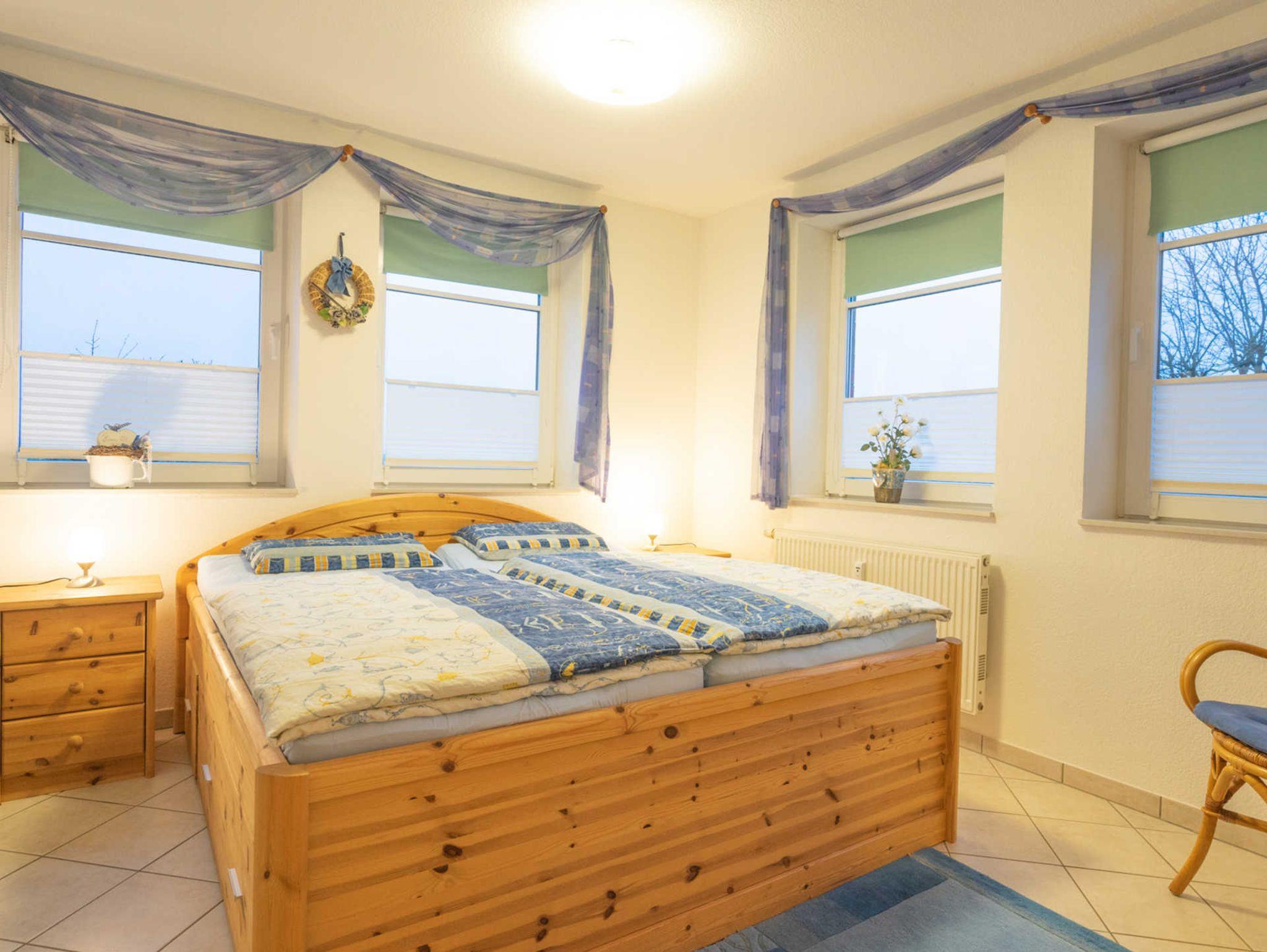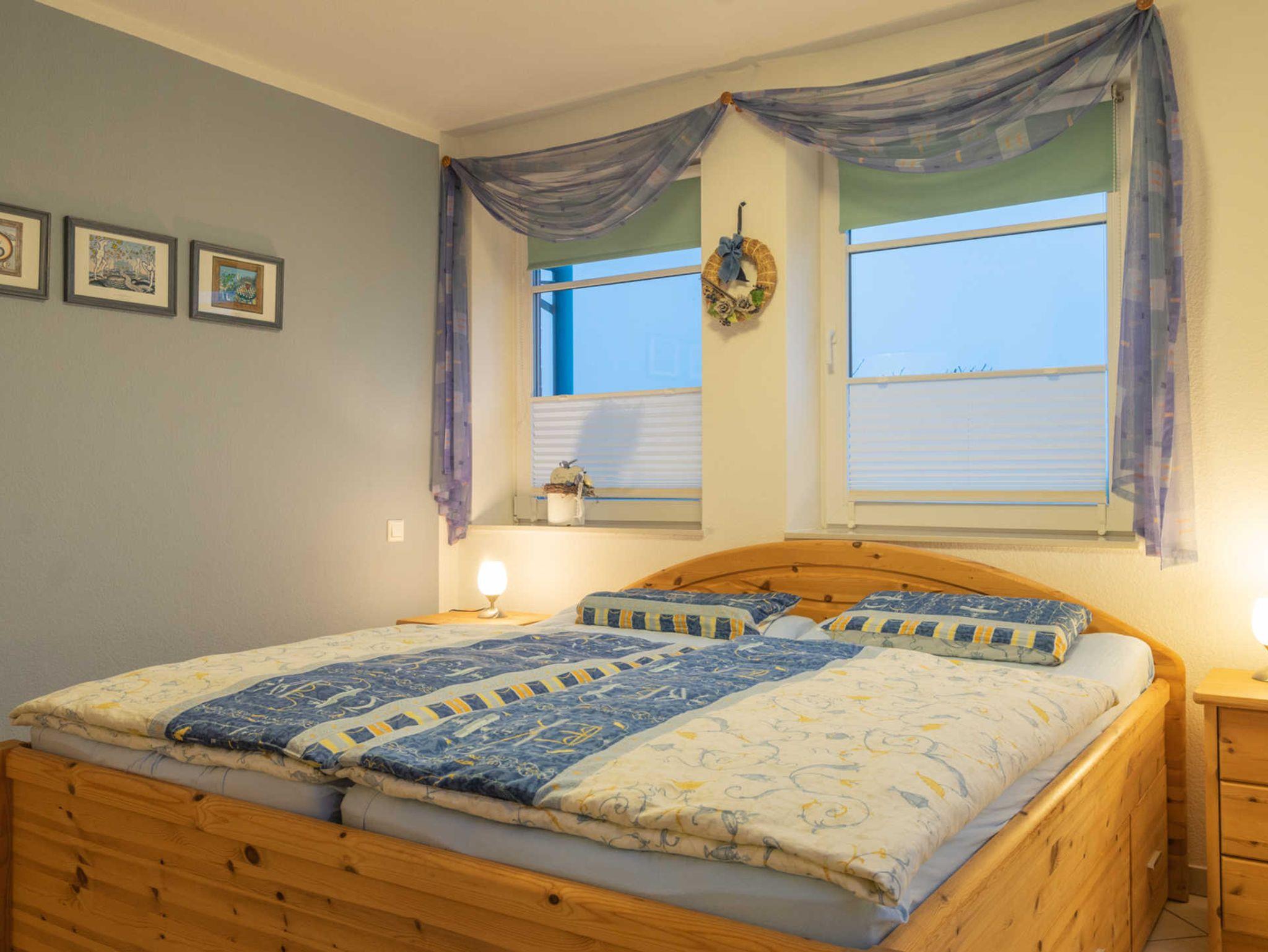 Im Schlafzimmer können Sie in einem komfortablen Doppelbett (180 x 200 cm) nächtigen. Auf Wunsch legen wir selbstverständlich für Sie vor der Anreise frische Bettbezüge und frische Handtücher bereit.