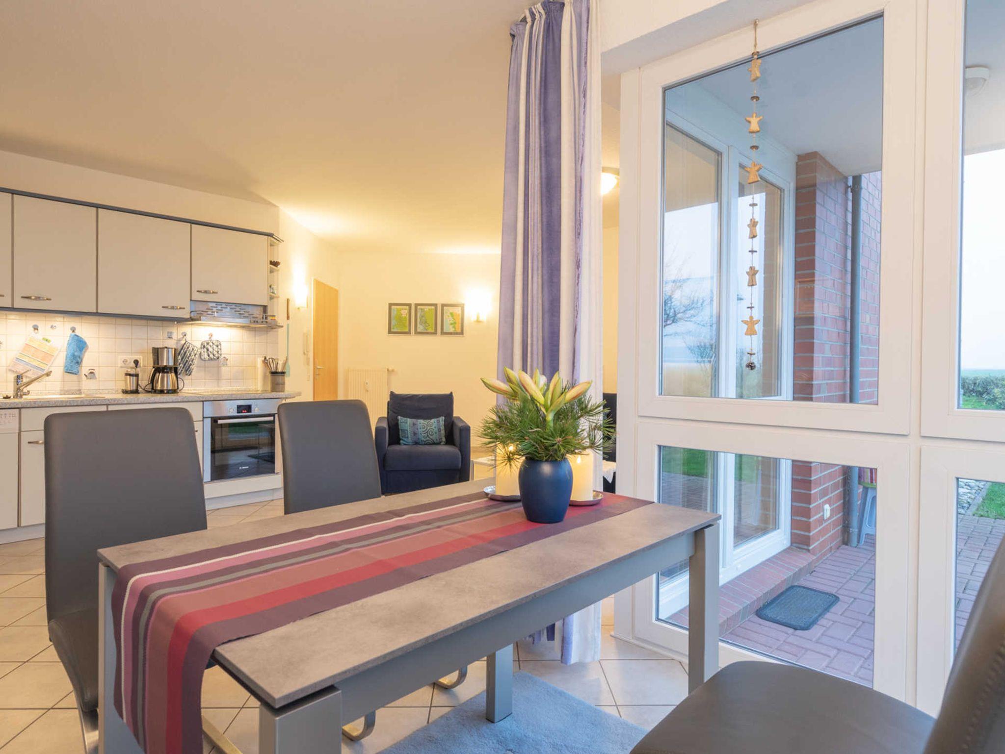 Ihre Ferienwohnung Grete im Klaar Kimming besteht aus einem komfortablen Wohn- und Essbereich mit separatem Schlafzimmer und Bad. Auf 53 m² können Sie so entspannt in den Nordstrand-Urlaub starten. Die Wohnung ist ideal geschnitten für 2 Gäste.