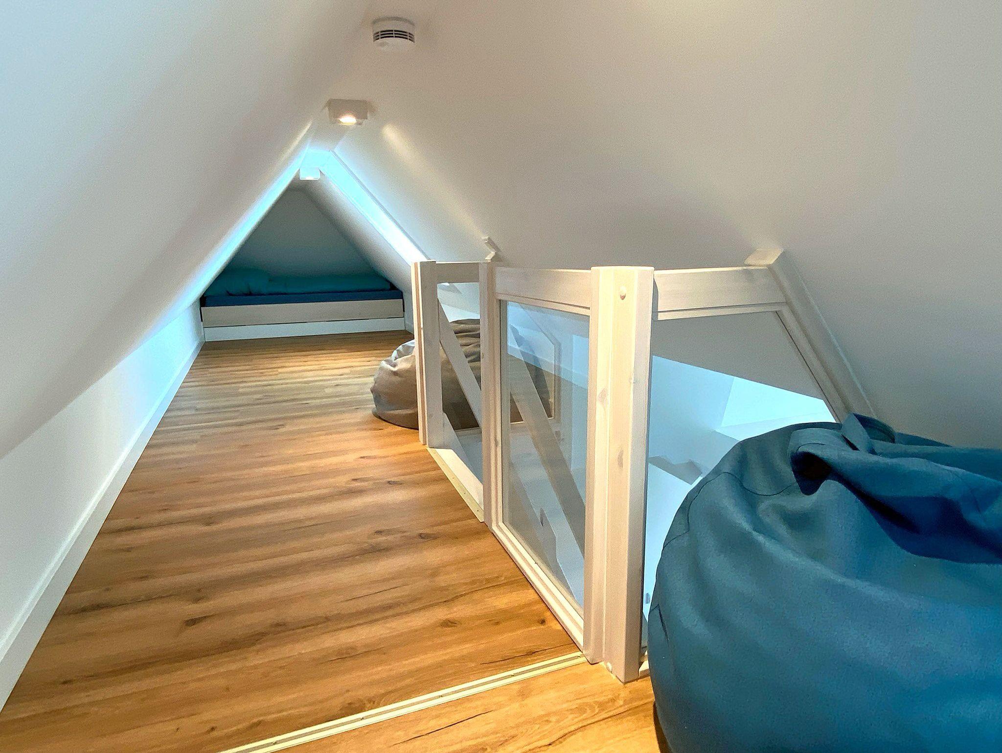 Für Jugendliche und/oder geübte Kletterer gibt es eine Schlafkoje direkt unter dem Dach mit 2 Futon-Betten.