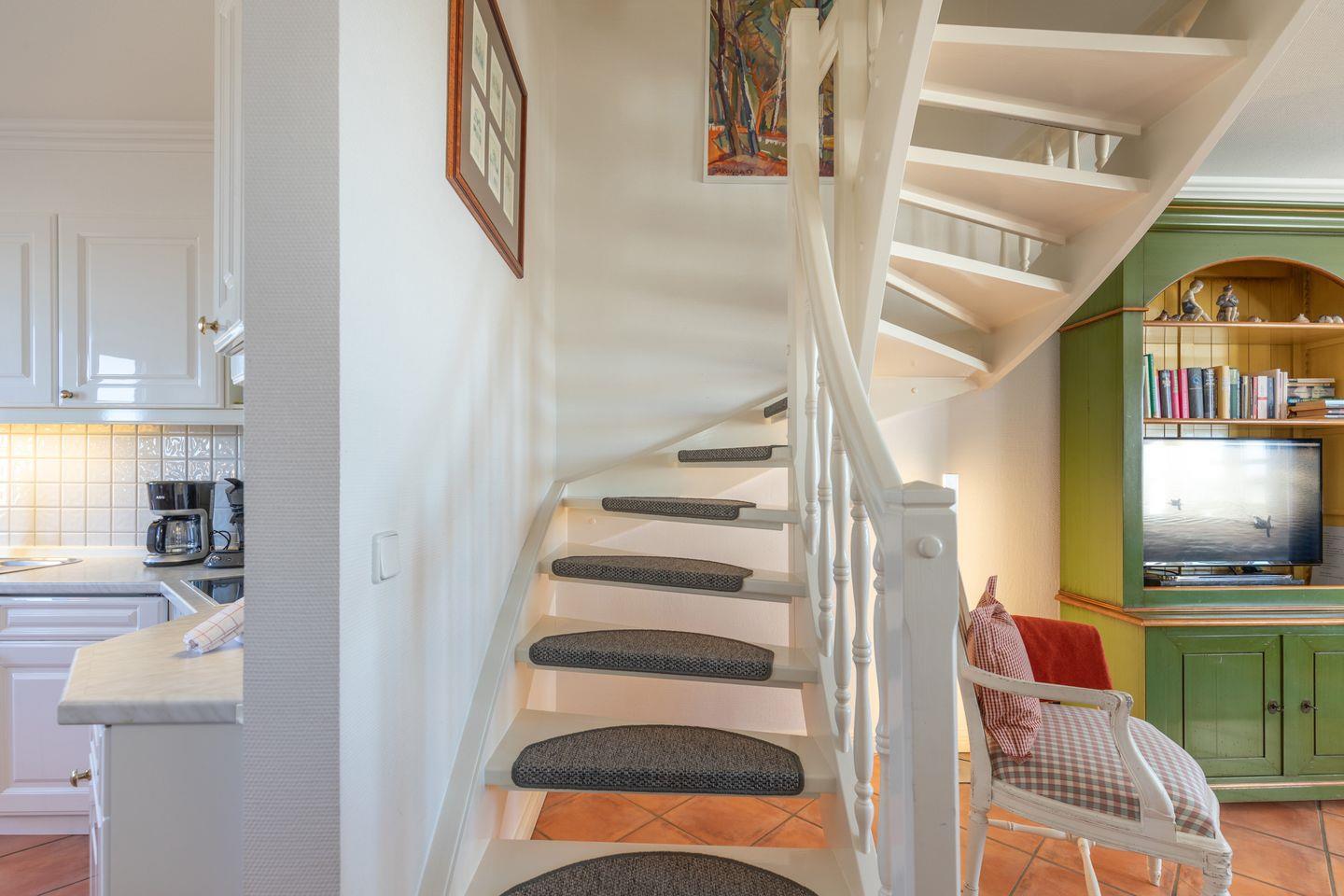 In der liebevoll eingerichteten Wohnung finden bis zu vier Personen Platz. In dem gemütlichen Wohnbereich mit den beiden Zweisitzer-Sofas sowie einem Sessel lassen sich entspannte Stunden oder aber auch lustige Spieleabende verbringen. Die Küche ist mit einem Kühlschrank, Backofen, Geschirrspüler, einer Filter-Kaffeemaschine und einem Wasserkocher bestens für Kochfreunde ausgestattet. Gemeinsame Mahlzeiten und ein gemütliches Zusammensitzen passen hervorragend zu dieser idyllischen Küche mit ihrem Essbereich!
