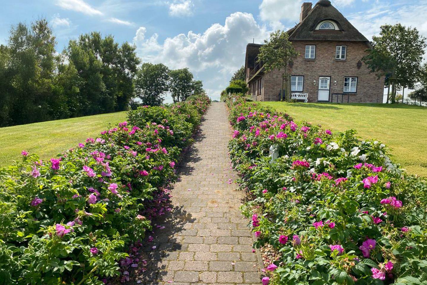 Genießen Sie die erholsame Ruhe in einem zur Unterkunft gehörenden Gartenbereich mit eigenem Strandkorb.