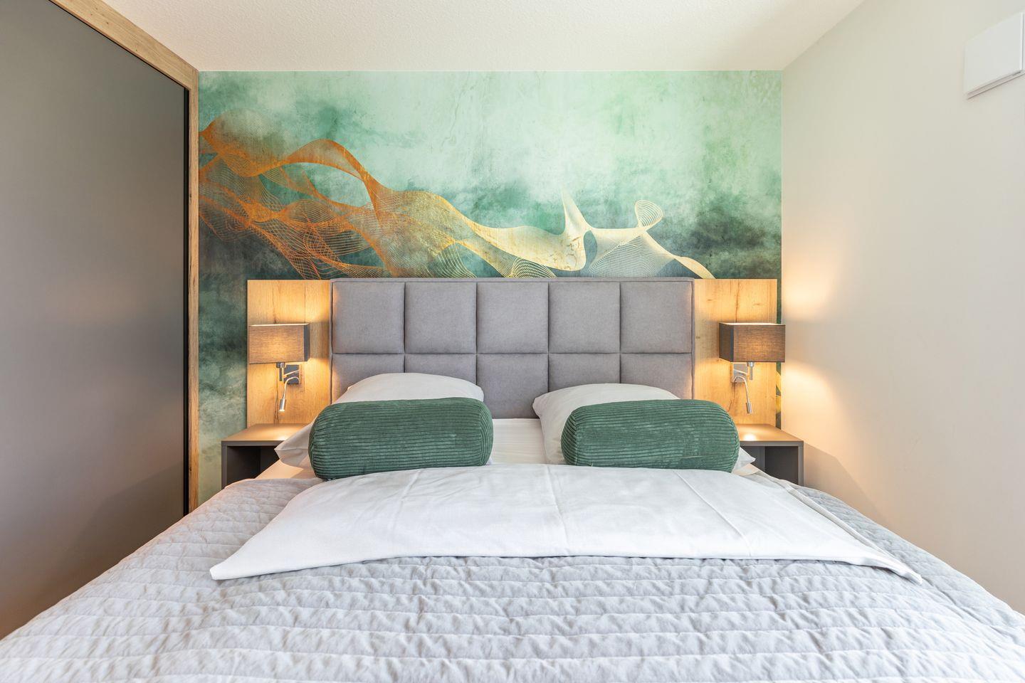 Die Wohnung verfügt über zwei separate Schlafzimmer mit komfortablen Schlafmöglichkeiten und hochwertigem Fliesenboden. Sie eignen sich ideal für Familien, Paare oder kleine Reisegruppen. Zwei moderne Badezimmer, ausgestattet mit bodengleichen Duschen, stilvollen Waschtischen, Fenstern und Haartrocknern, sorgen für zusätzlichen Komfort und Wohlbefinden.