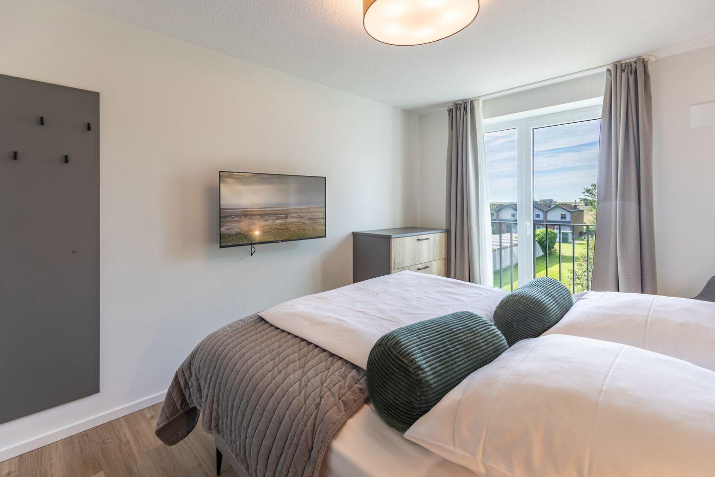 Ein besonderes Highlight ist der gemütliche Balkon mit bequemen Gartenmöbeln. Hier können Sie entspannen und die frische Nordseeluft genieße. Die gesamte Wohnung ist mit einer Fußbodenheizung (Erdwärme) ausgestattet, sodass Sie sich auch in den kühleren Monaten rundum wohlfühlen. Alle Fenster sind zudem mit Sichtschutz versehen.