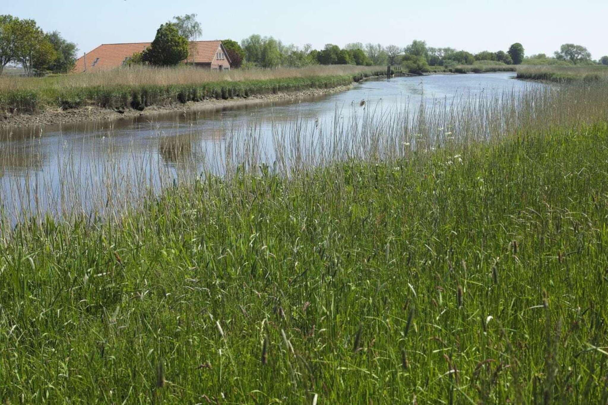 Peace and nature experience at the Deichhasenhof in a spacious, ecologically built holiday apartment with a river view, in the middle of Nortmoorer Hammrich.