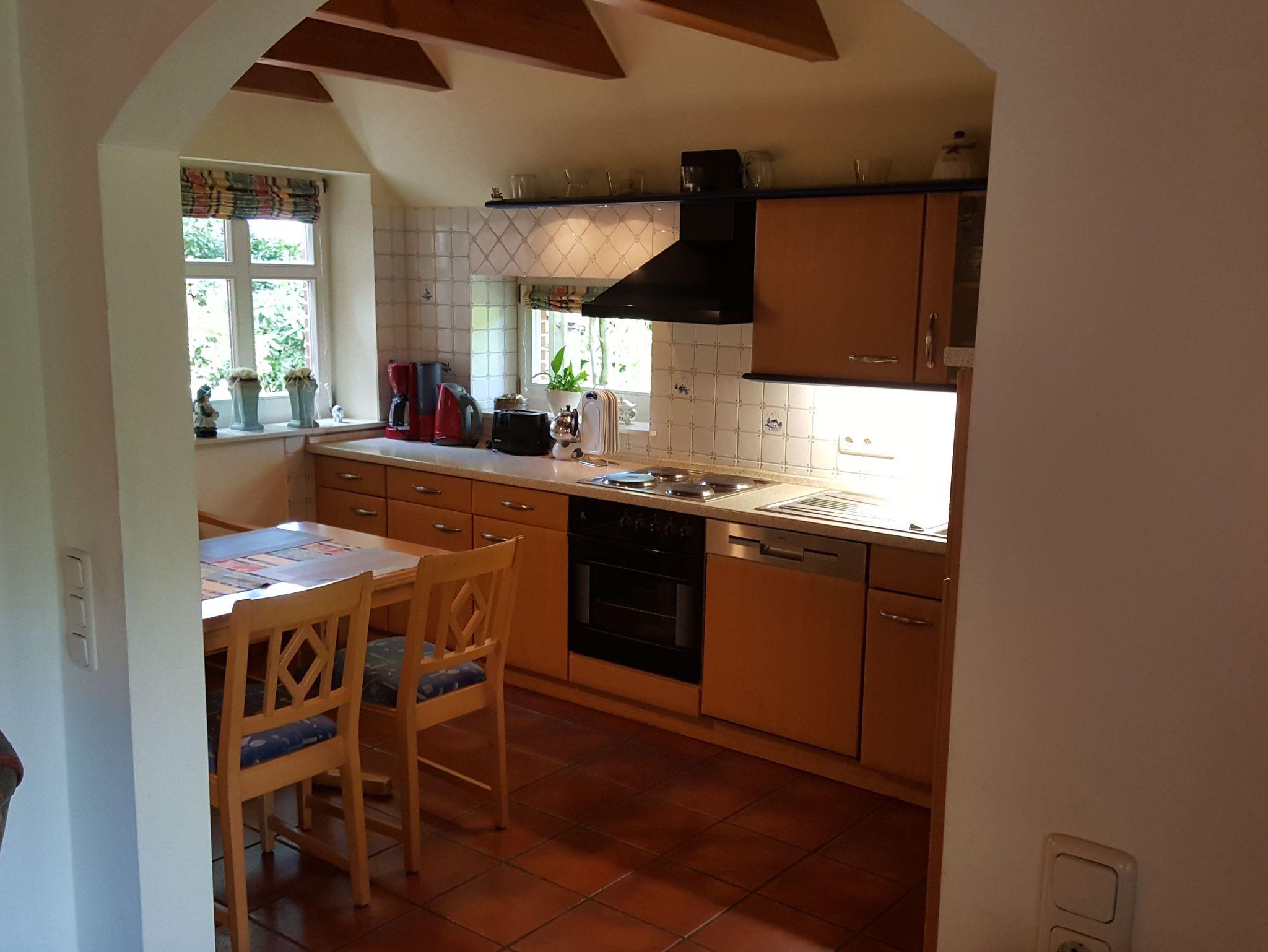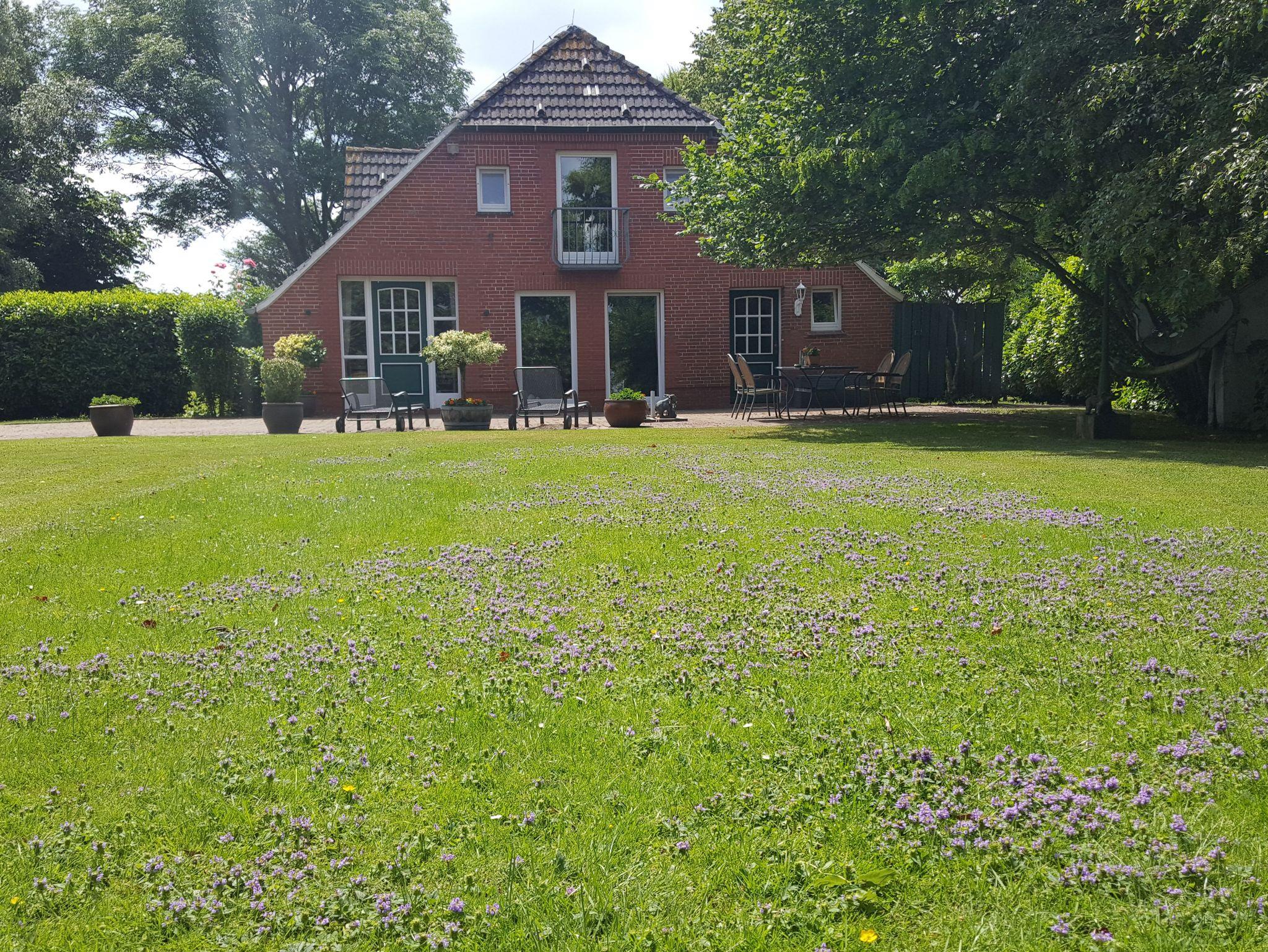 Ostfriesisches Fehnhaus direkt am Fluss Jümme, Ferienwohnung für 2 Personen mit exklusiver Einrichtung, Kamin, komplett ausgestatteter Wohnküche mit Geschirrspüler, Gefrierkombination, 1 Doppelzimmer und 1 Einzelzimmer.