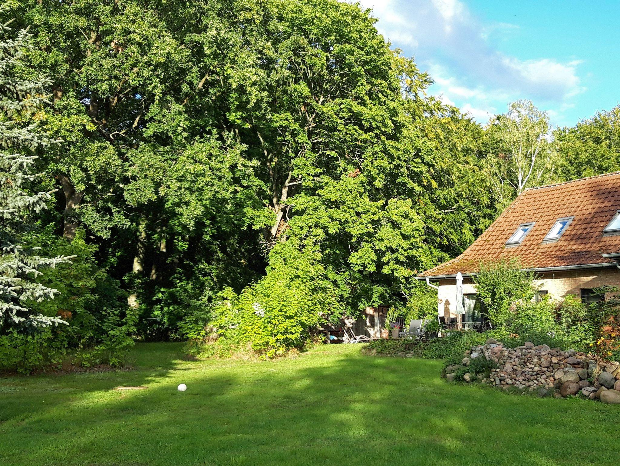 Nichtraucher-Ferienwohnung mit großer Terrasse direkt an den Wäldern der Nossentiner / Schwinzer Heide.Die Ferienwohnung Am Mischwald in Nossentiner Hütte befindet sich am Ortsrand in einem Einfamilienhaus mit einem eigenen Eingang. Sie betreten die Erdgeschoss-Wohnung durch einen kleinen Flur. Im Wohnzimmer steht eine Couch gegenüber dem Fernseher sowie ein Esstisch nahe der offenen Küche. Vom Wohn- und Esszimmer kommen Sie direkt auf die große Terrasse mit dem schönen Naturblick. Im Doppelbettzimmer befindet sich ein 3-türiger Kleiderschrank mit Spiegel. Der dritte Gast kann auf dem Schlafsofa im Wohnbereich oder auf dem klappbaren Gästebett (0,80m x 1,90m) schlafen. Die Ferienwohnung wird durch ein Duschbad mit WC komplettiert. Die Nichtraucherwohnung hat an allen Fenstern Außenrollläden. WLan ist vorhanden, leider empfangen Sie nur das D1-Mobil-Netz.