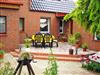 Vor der Ferienwohnung haben Sie eine schöne Terrasse zum Frühstücken und Grillen. Für Ihre Räder gibt es eine überdachte Unterstell-Möglichkeit auf dem Grundstück. Ihr Auto parkt auf dem Grundstück. Raumaufteilung - alle Zimmer befinden sich im Erdgeschoss auf einer Ebene - : 1 Wohnzimmer mit Schlafcouch, 1 Schlafzimmer mit Doppelbett (1,80m x 2,00m) und Platz für 1 Kinderreisebett, 1 Küche mit Esstisch, 1 Bad mit Dusche/WC.