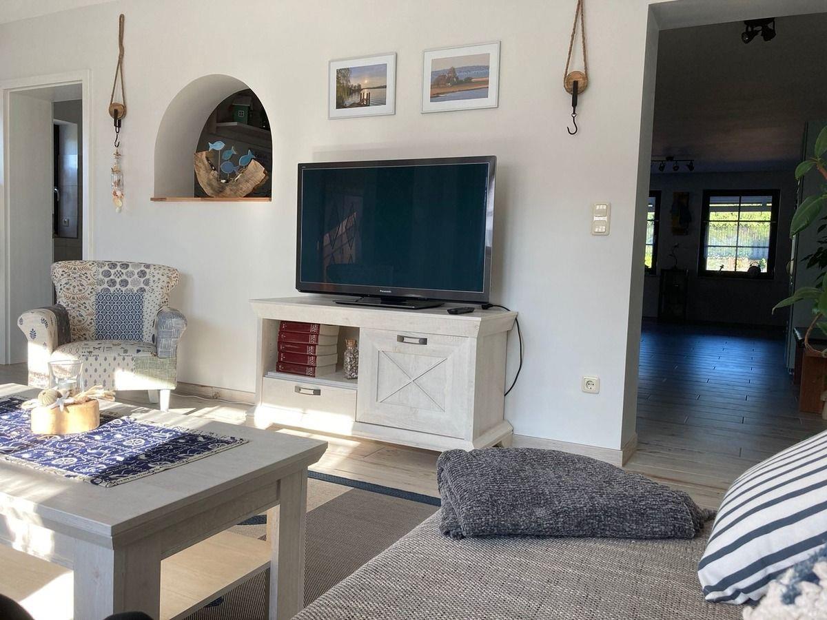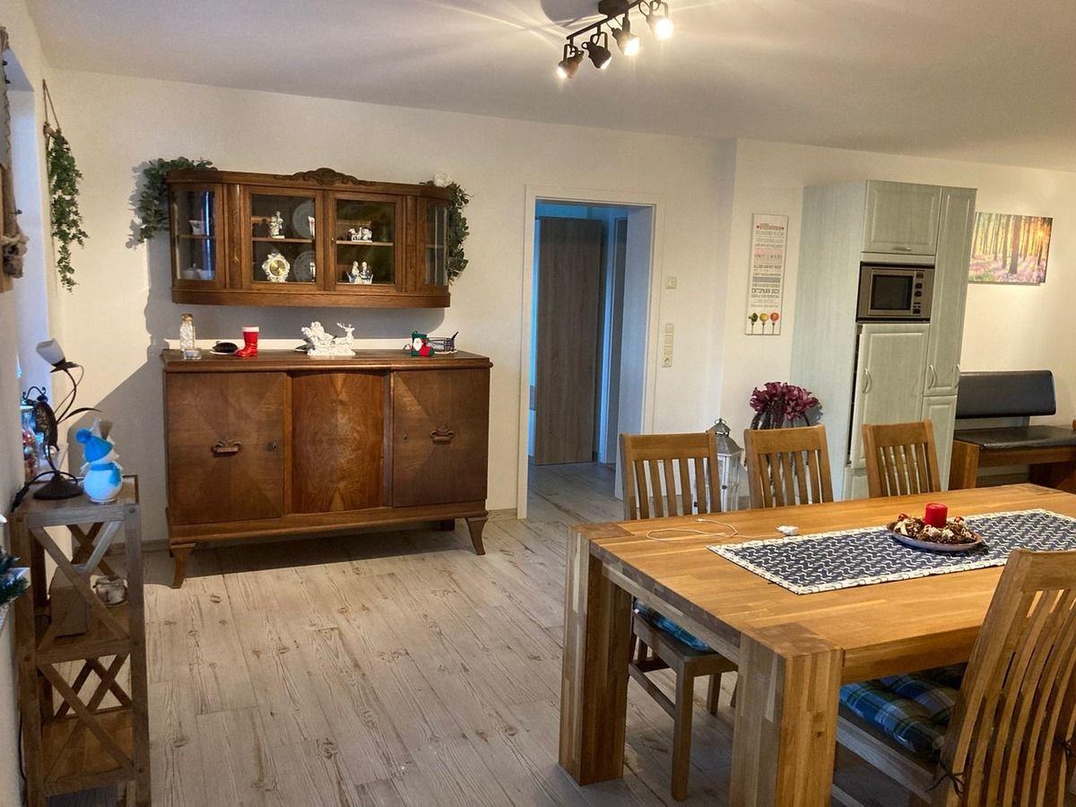 Die großen Nichtraucherwohnung mit separaten Eingang und gesonderter Toreinfahrt verfügt über einen gemütlichen Wohnbereich mit Schlafcouch als Aufbettungsmöglichkeit und einem TV und W-Lan. Eine großzügige offene Küche mit einem Essbereich bietet mit einem E-Herd,Kühlschrank mit Gefriermöglichkeit, Mikrowelle, Geschirrspüler und diversen Küchenkleingeräten alles was Sie in einer Küche brauchen. Zu dieser Wohnung gehören auch zwei getrennte Schlafzimmer. Das erste Schlafzimmer verfügt über ein Doppelbett und eine grossen Kleiderschrank. Das zweite Schlafzimmer hat zwei Kojenbetten für 2 Personen mit zusätzlichen, ausziehbaren Schlafmöglichkeiten zur Aufbettung für 2 weitere Personen und einem direkten Zugang zu eines der zwei Bäder. Beide Bäder verfügen über eine ebenerdige Dusche, WC und Waschbecken. In einem Bad befindet sich auch eine Waschmaschine die kostenlos zur verfügung steht. In der gesamten Wohnung befindet sich eine Fussbodenheizung. Über einen Flur haben Sie Zugang zur Terasse mit Sonneschutz, die mit Terrassenmöbel und zwei Strandkörben stillvoll eingerichtet ist.