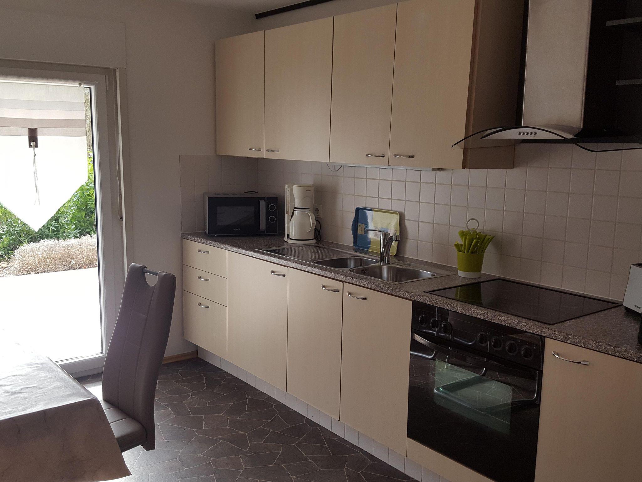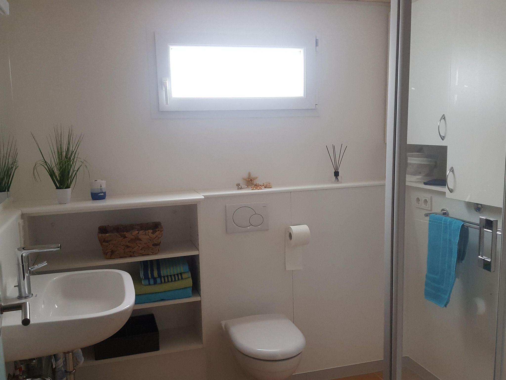 Sie wohnen: in einer 60 qm großen Ferienwohnung mit Schlafzimmer, sep. Küche, Wohnzimmer mit Doppelcouch und großer Essecke, Bad mit Dusche, barrierefreiem Eingang, Terrasse und Liegewiese.