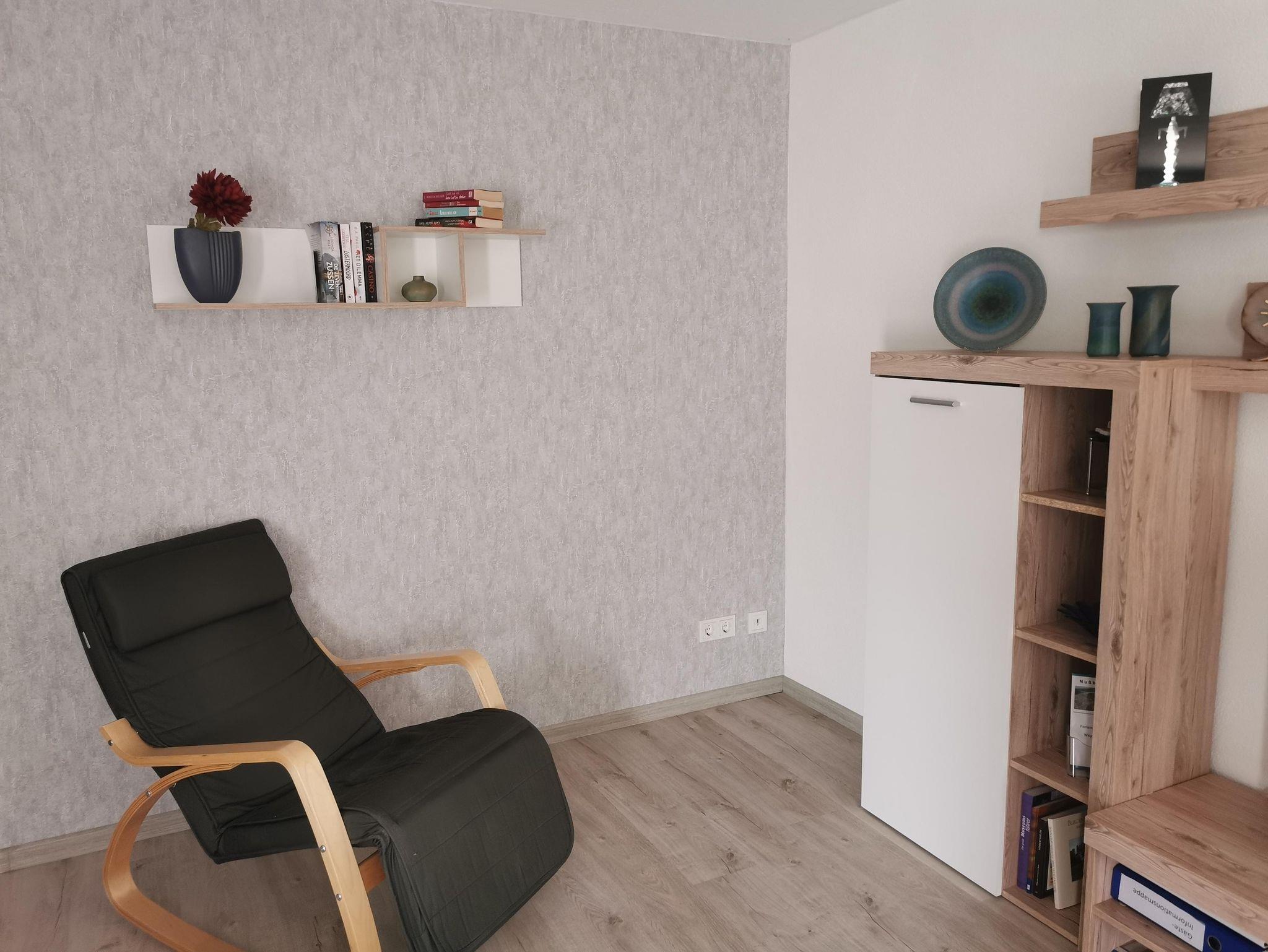 Sie wohnen: in einer 60 qm großen Ferienwohnung mit Schlafzimmer, sep. Küche, Wohnzimmer mit Doppelcouch und großer Essecke, Bad mit Dusche, barrierefreiem Eingang, Terrasse und Liegewiese. WiFi vorhanden.