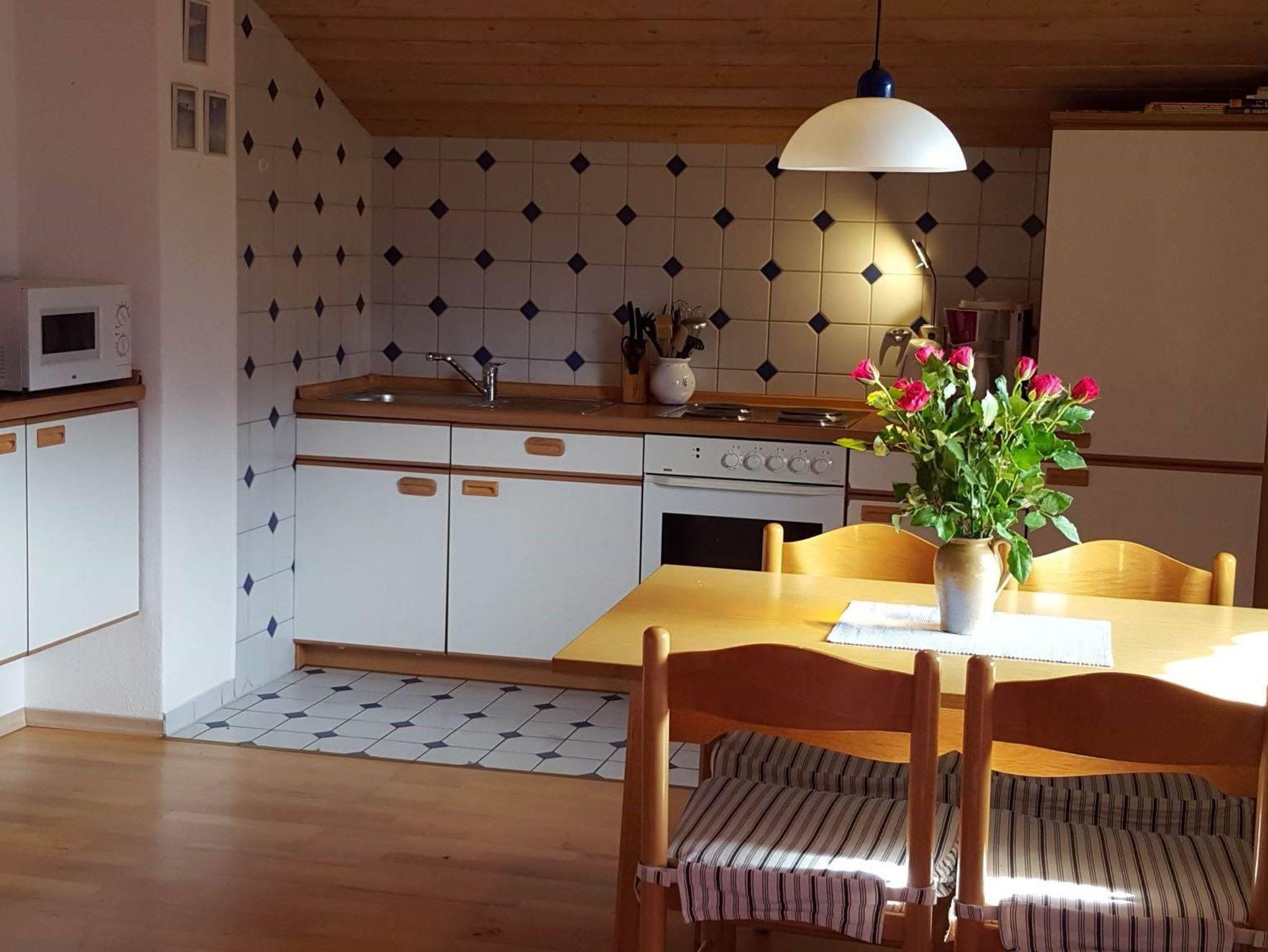 Ferienwohnung für maximal 5 Personen,55qm, Balkon mit Bergblick, familienfreundlich in ruhiger sonniger Lage. Kinderfreundlich , Parkettböden. . Seperater Eingang. Parkplatz vor dem Haus. Zahlreiche Wander- und Radtourmöglichkeiten. Solarbeheiztes Freibad im Ort.